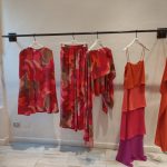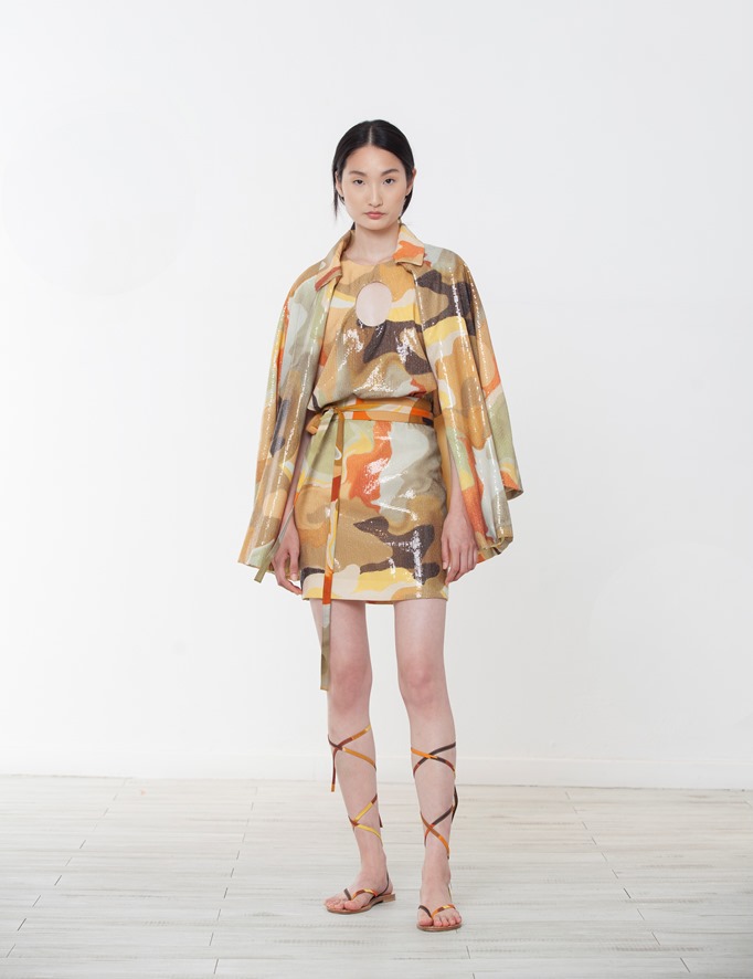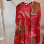Di matrice psichedelica, è la stampa su sinuosi abiti peplo e caftani d’ispirazione anni venti.