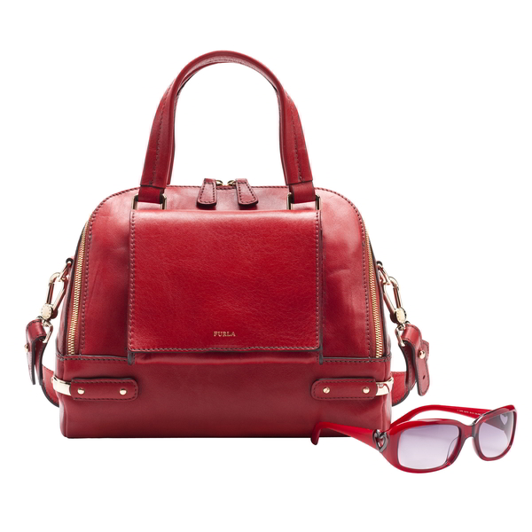 Per rendere unica questa festa, Furla propone il colore della passione, che trova la sua perfezione nell’eleganza, qualità e ricercatezza del bauletto modello Amalfi. Pezzo cult del guardaroba femminile, questa borsa è realizzata in raffinato cuoio effetto vintage. La sua forma inedita, la costruzione innovativa e la chiusura a zip asimmetrica che ne esalta il design, sono espressione dello stile italiano amato in tutto il mondo. Il rosso trova poi un’elegante interpretazione anche sugli occhiali da sole della linea capri: una montatura avvolgente in acetato impreziosita sulle astine da un piccolo cuore in metallo, a rilievo, che decora e funge da cerniera.