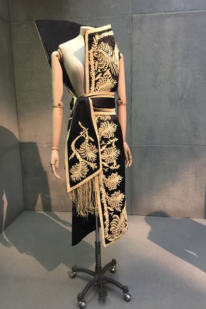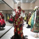 Gli svariati materiali esposti, per lo più provenienti dall’archivio londinese dello stilista, raccontano le sue matrici culturali, ovvero le fonti di ispirazione che attingono prima di tutto all’inquietante gotico vittoriano, formalmente rigoroso ma non scevro di vivida policromia e pittoresca levità, per stemperarsi poi in performance esotiche geograficamente eterogenee, trapunte di suggestioni africane, cinesi, indiane, giapponesi.