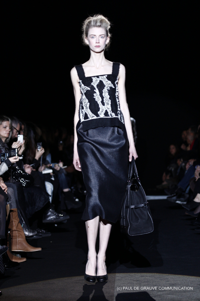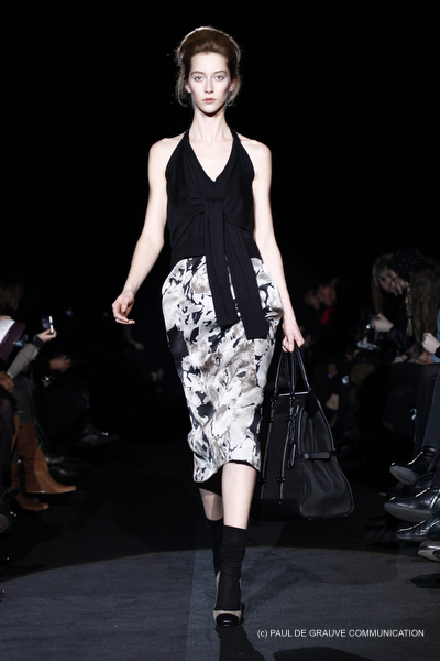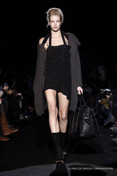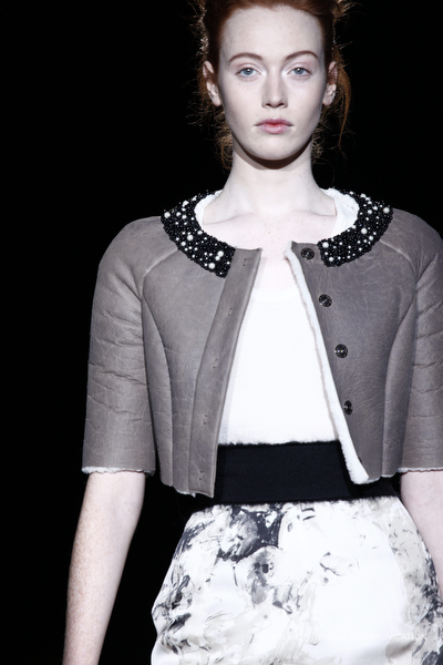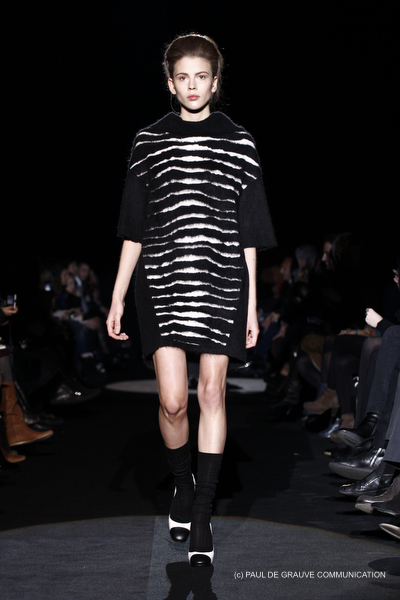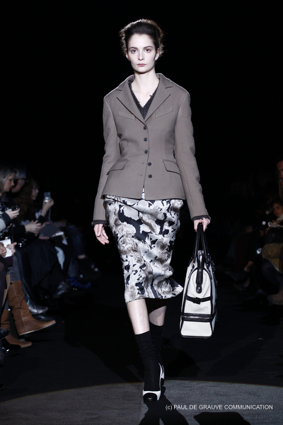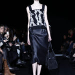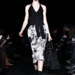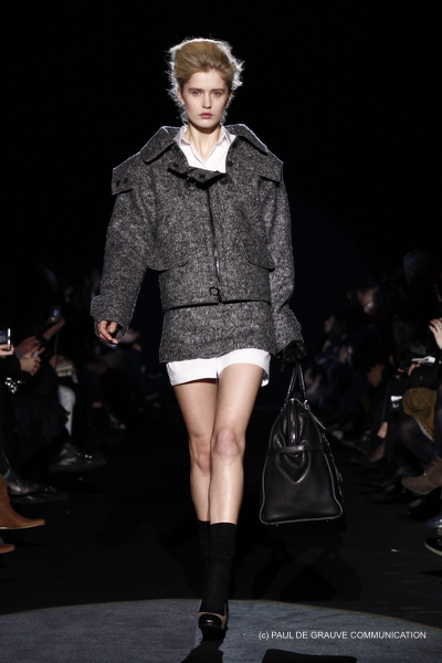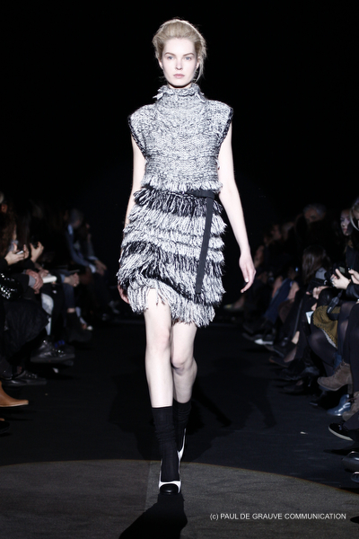 E poi mini abiti in lana merino interamente ricoperti di frange oppure di pelliccia; giacche dai tagli maschili, oppure più sofisticate, taglio Chanel, indossate sopra a mini abiti in gazar a stampa floreale o gonne dai fianchi pronunciati.