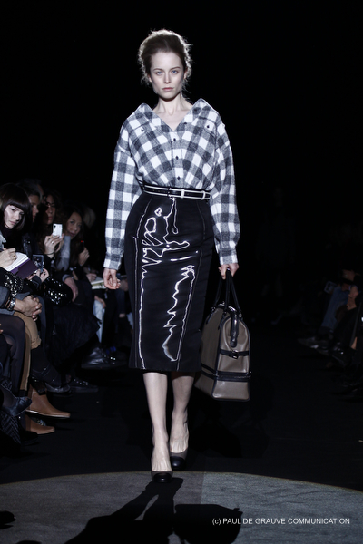 Anche i tessuti spaziano moltissimo: da quelli classici, come il tweed, il jersey, la lana, macro pied de poule o jacquard, ad altri originali, alcuni dall’effetto quasi plastico e lucido, oppure pelle, ma con un effetto quasi “imbottito” per cappottini dal taglio elegante o tubini dalla linea a trapezio.