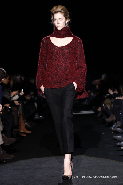 La donna di Iceberg scende poi in passerella avvolta da caldissimi e “maxissimi” pull e camice over da uomo con la scollatura lasciata cadere dietro la schiena. Tagli non convenzionali anche per i maglioni, destrutturati e che, sempre dietro alle spalle, lasciano scoperta la schiena.