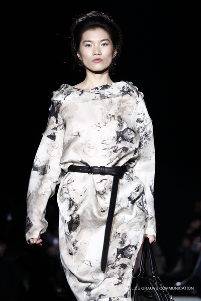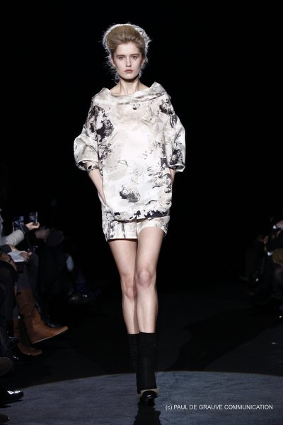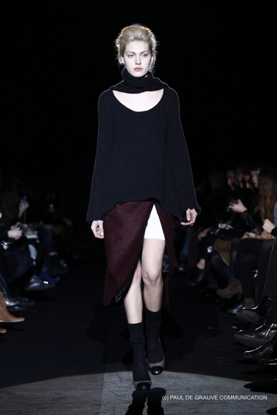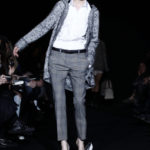 La passerella è una continua evoluzione: sotto le strettissimi gonne a tubino, lunghe sotto il ginocchio con spacco altissimo, si intravedono i boxer, che spiccano anche sotto a pantaloni volutamente tagliati.
