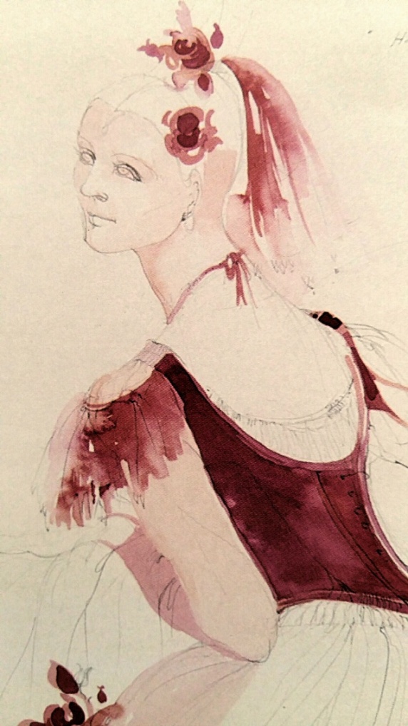 Bozzetto per C. Fracci-Hommages Romantiques regia B. Menegatti-ph. M. Bracaloni-particolare da "Anna Anni dal segno alla scena"