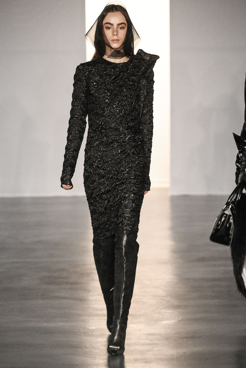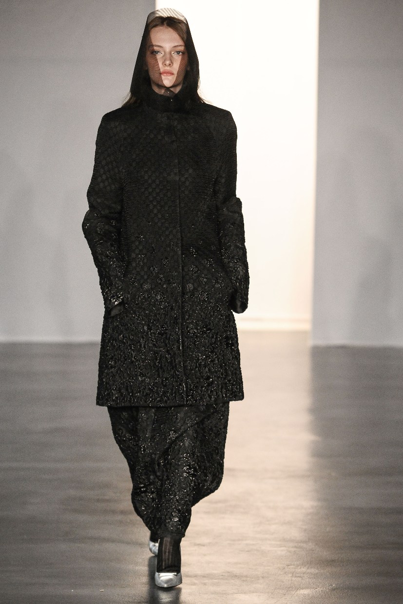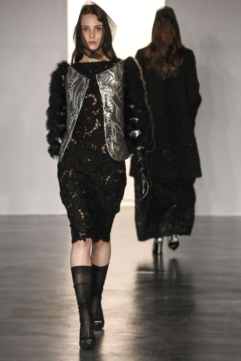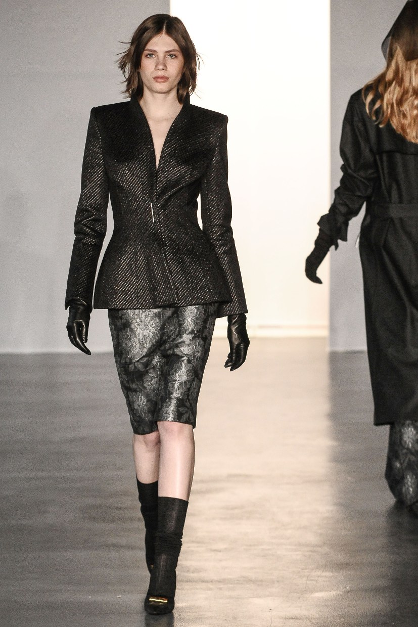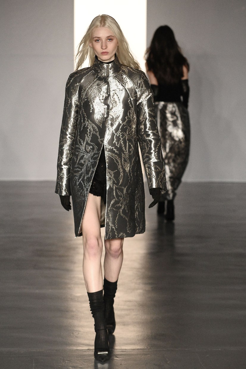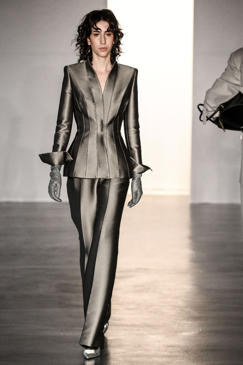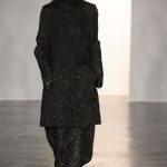 La piccola collezione, 21 outfit in tutto, presentati al Mudec -il Museo delle Culture di Via Tortona- conferma questa impressione. Esempio tra tutti il tailleur pantalone grigio ferro e la giacca in pelle nera: la giacca segue perfettamente la linea del busto sottolineato dai innumerevoli tagli e cuciture. Come non pensare agli abiti confezionati dalle sorelle Fontana per Ava Gardner che venivano costruiti, o meglio cuciti -come testimoniava Micol- sul corpo della star? Un risultato che può ottenersi solo con il “fatto a mano”. L’eccellenza quindi del “ben fatto” sartoriale, trasferita sul prêt-à-porter: l’obiettivo è più che buono, e il risultato di questo debutto è positivo.