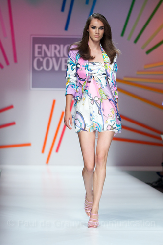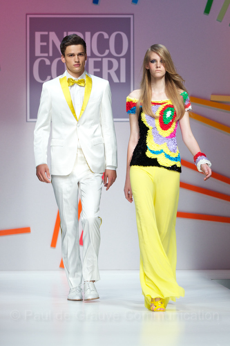 Enrico Coveri fa sfilare una collezione che guarda dichiaratamente ad uno dei decenni più complessi e intricati del secolo scorso, che ha prodotto scissioni e cambiamenti sociali, politici e culturali che hanno poi inevitabilmente segnato i successivi periodi.