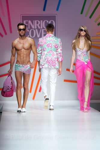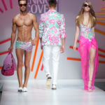 Tanto, troppo colore, presentato nella sua più totale purezza o declinato su stampe floreali o geometriche, per giacche dal taglio invece classicamente sartoriale o per piccolissimi e aderentissimi costumi da bagno, a dir poco eccentrici.