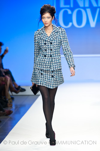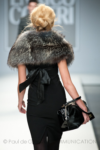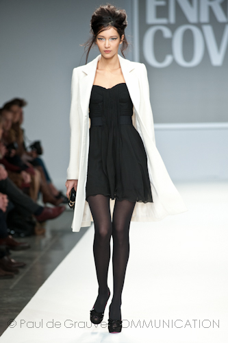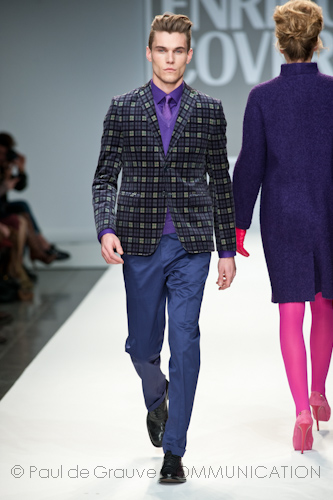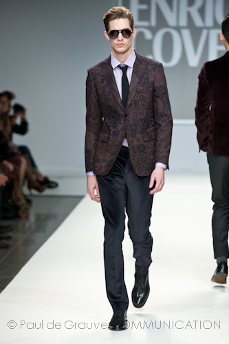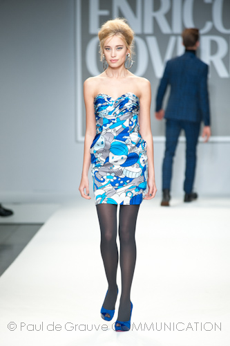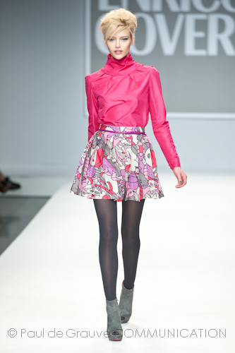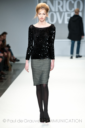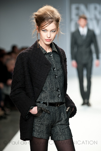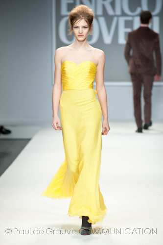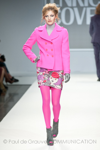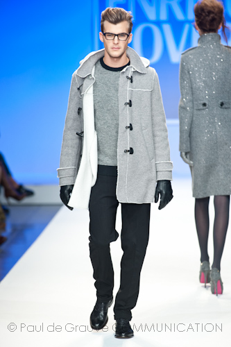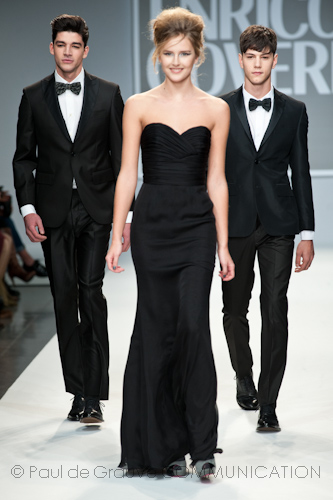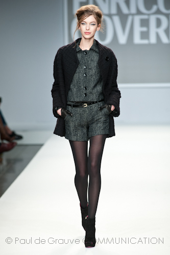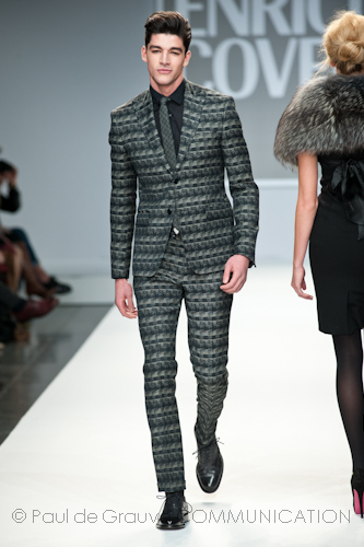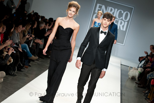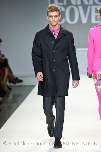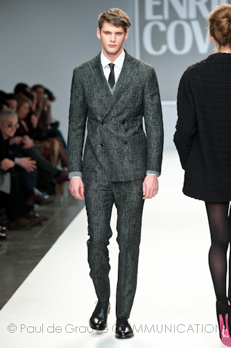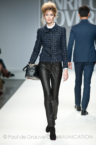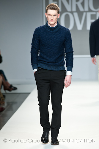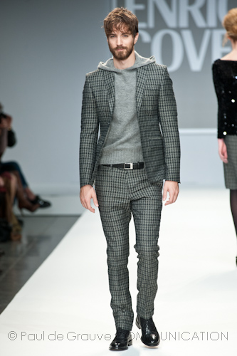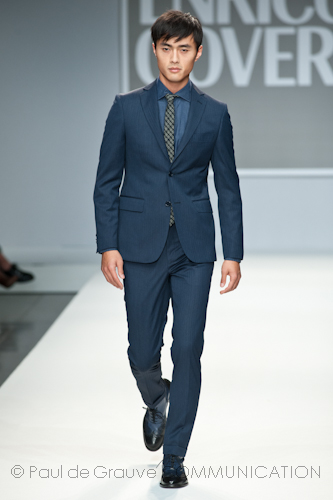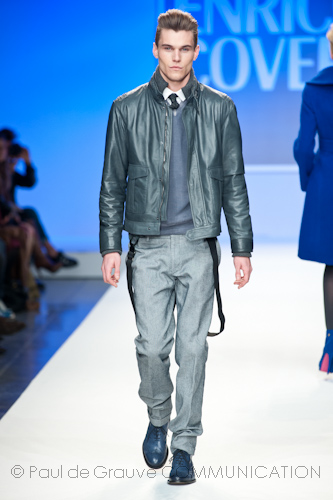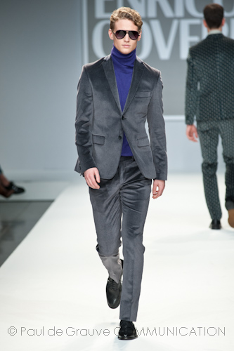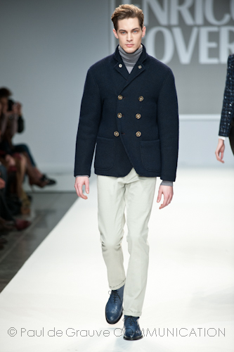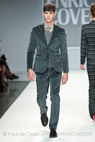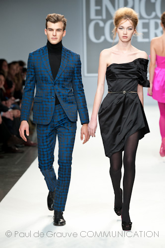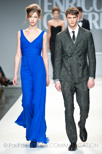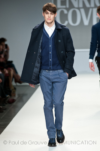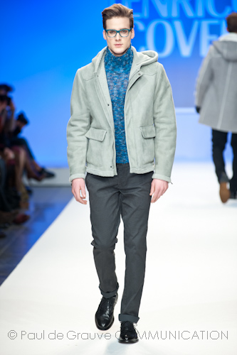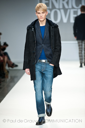 Presso l’ormai collaudato nuovo polo distaccato della moda in zona Tortona, si è chiusa in grande stile Milano Moda Uomo con la doppia sfilata Enrico Coveri autunno/inverno 2013/14. Lo stilista infatti, da qualche anno, si differenzia per unire in passerella gli outfit maschili a quelli femminili; positiva allora l’idea di fargli concludere la manifestazione: finite le giornate dedicate a lui abbiamo avuto un assaggio degli abiti per lei, pronti a gustare Milano Moda Donna il mese prossimo. Non è facile presentare insieme entrambe le collezioni, devono essere armoniche tra loro ma nello stesso tempo non contaminarsi troppo l’un l’altra; quest’anno Coveri ci è riuscito pienamente! La donna sperimenta i grigi e i tessuti di lui, senza perdere in vitalità e sensualità; l’uomo prova qualche fantasia e colori forti negli accessori, ma senza affatto risultare stravagante.
