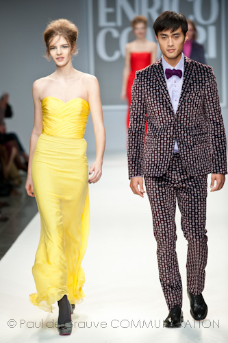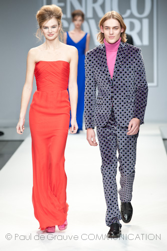 Una perfetta coppia quella disegnata da Enrico Coveri che stupisce anche sul finale; quando modelli, modelle e stilista compreso, solcata la passerella per il saluto conclusivo, non tornano indietro ma escono dal davanti meritandosi un ultimo applauso.