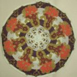 Tra le altre meraviglie tessili esposte al Museo Lombardi, ricordiamo un copriletto cinese di fine ‘800, quadrato, in seta beige con motivi ornamentali ricamati a punto pieno, punto erba e punto nodi in filo di seta blu, azzurra e bianca, rappresentanti al centro un pavone circondato ai quattro angoli da fiori e foglie. Il ricamo è bordato, dall’interno all’esterno, da bande perimetrali traforate e da un ulteriore decoro fitomorfico; un orlo a giorno rifinisce il bordo esterno.