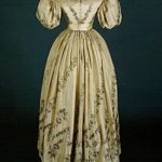 Tra i capi esposti, ad esempio, figura un abito intero (tipo princesse) aderente in vita, appartenuto alla nobile Isabella Bazzini Cavalli di Fidenza. Chiuso sul davanti, con pieghe morbide nella gonna, in seta marezzata ocra guarnita di finiture in pizzo a tombolo e cordoncino, il modello è di manifattura italiana post-unitaria; il busto, sostenuto da stecche, è accompagnato da una fascia in pizzo nera. Colpisce i visitatori anche un abito della prima metà dell’800, costituito da una gonna e da un corpetto in garza di seta color perla ricamata a motivi floreali in lamé d’argento e foderata in seta avorio scuro, che fu indossato dalla duchessa Maria Luigia: il corpetto ha maniche a palloncino e l’ampio scollo è rifinito con pizzo in tulle meccanico e merletti a fuselli in seta avorio con filo d’oro di contorno, mentre la gonna è arricciata intorno alla vita con plissettatura nel mezzo dietro.