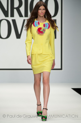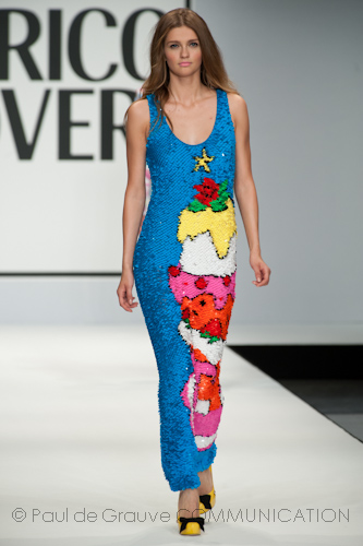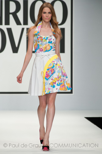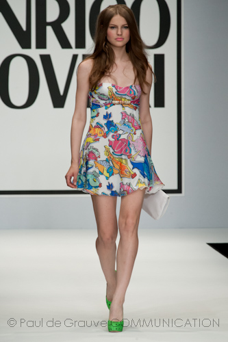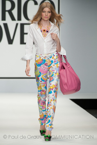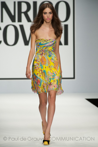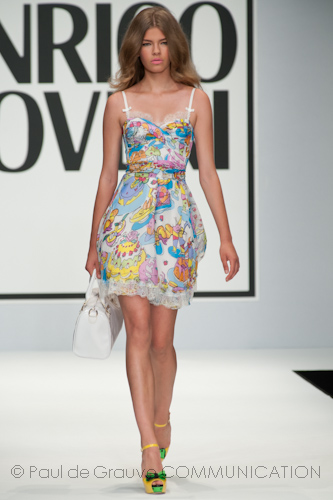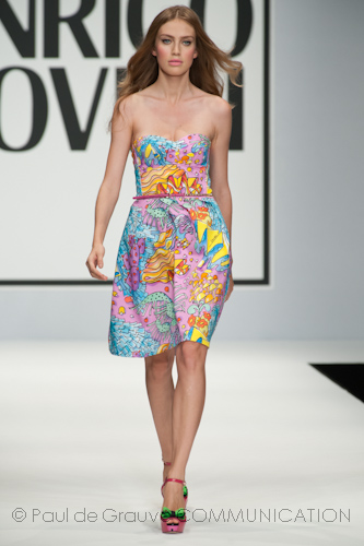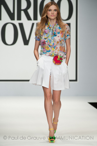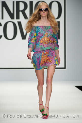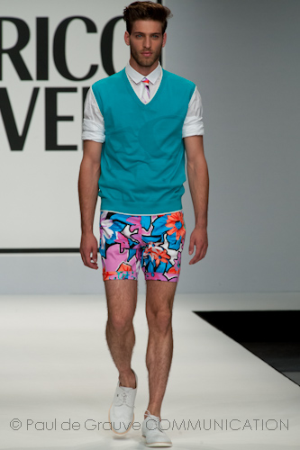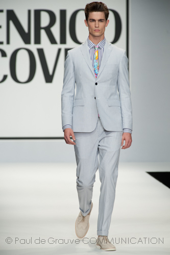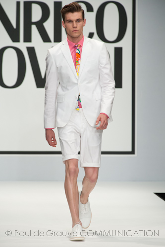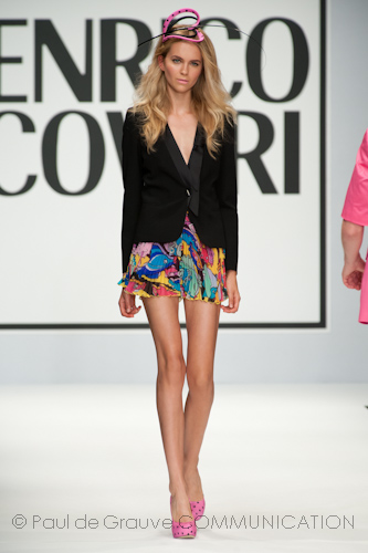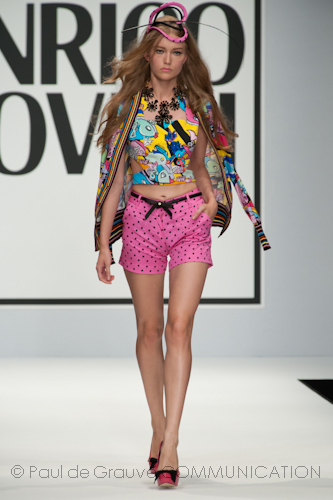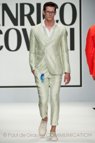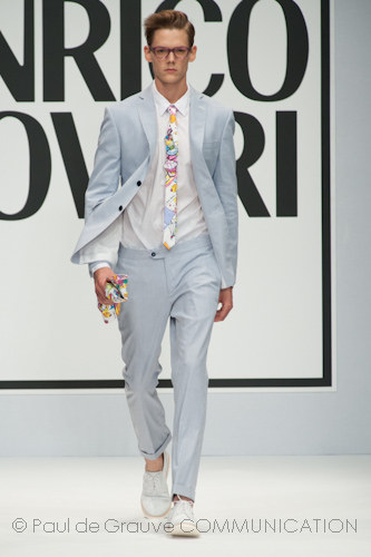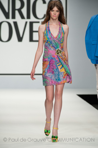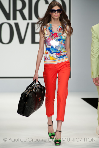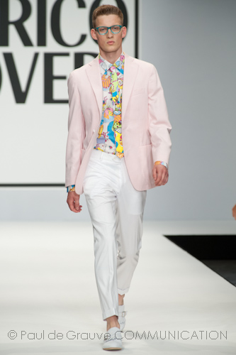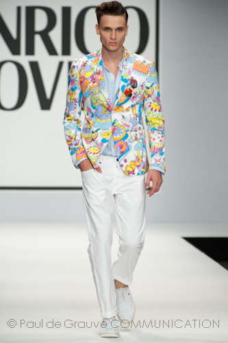 Enrico Coveri chiude la settimana dedicata alla moda maschile facendo sfilare, come di consueto, sia l’uomo che la donna. Un’esplosione di buonumore, colori allegri e vivaci, stampe giocose e voglia di non prendersi troppo sul serio. La maison, che delle stampe ha fatto il suo tratto distintivo, ne disegna quattro inedite per la prossima primavera estate.