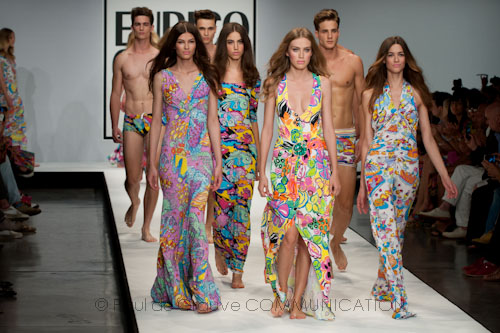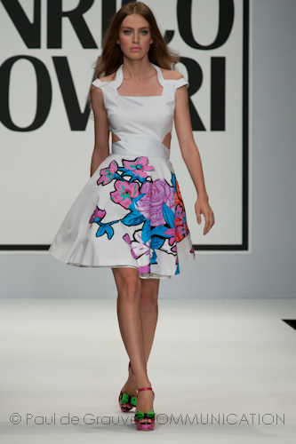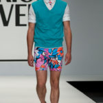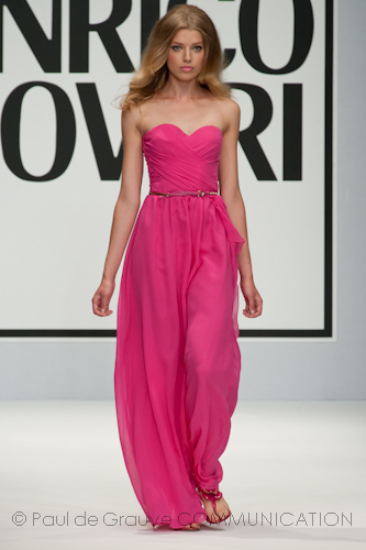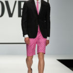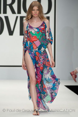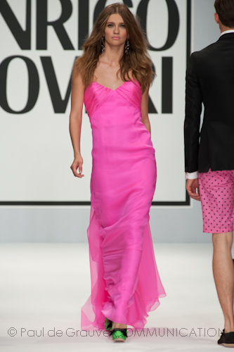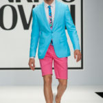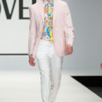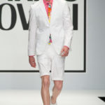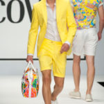 Si conclude con il più classico print floreale, stavolta ingigantito e stilizzato. Ancora chiffon per lei, ma stavolta anche abiti più strutturati, dove i fiori si intersecano armoniosamente con il bianco puro. Lui sperimenta il color block dalle tinte decise e gioca con le lunghezze: blazer e bermuda o pantaloni lunghi e una insolita giacca a maniche corte. Per la sera base fuxia e micropois neri per lui e per lei.