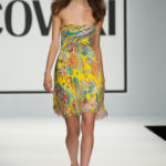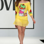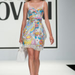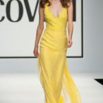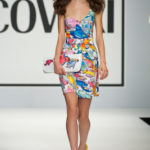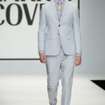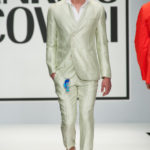 Le stampe proseguono, ma questa volta è un ritorno: si tratta del print cake, diventato celebre alla fine degli Anni Novanta. Francesco Martini Coveri lo reinterpreta su base bianca o giallo sole, adattandolo alle contaminazioni del guardaroba maschile, dove volumi e lunghezze sono ridimensionati, e spuntano camicie di chiffon, tessuto rubato al guardaroba femminile. La donna è più discreta: spezza la stampa con i toni neutri del bianco e accessori in nuance, oppure indossa un solo elemento decorativo, ingrandito su maglie o abiti rivestiti di paillettes – l’unica cosa che ci è parsa veramente eccessiva in questa collezione.