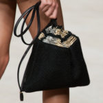 Sandali con la zeppa scultura in legno vestono i piedi della donna Scervino, con intrecci di pelle bicolore o stampa galuchat. A completare la collezione accessori che si accendono di luce: borse in struzzo stampato smerigliato oro, in rafia con paillettes o con rete macramè, borse sacchetto in maglia con inserti in nappa o rafia, imponenti orecchini chandelier in oro e pietre.