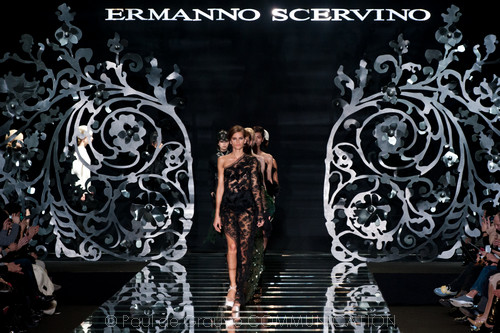 Ermanno Scervino dimostra ancora una volta la capacità di interpretare una donna iper femminile, questa volta enfatizzata dallo studio sui volumi che, armonizzati in maniera ottimale con i materiali, creano sculture naturali e mai rigide.