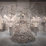 L’esplorazione della tradizione artistica siciliana prosegue nell’ottava sala con l’omaggio a Giacomo Serpotta, maestro del periodo Barocco che dedica il proprio talento alla lavorazione dello stucco. Qui è esposta una selezione di abiti della Collezione Alta Moda “Stucchi” che si fonde con lo spazio circostante in una grande sinfonia visiva.