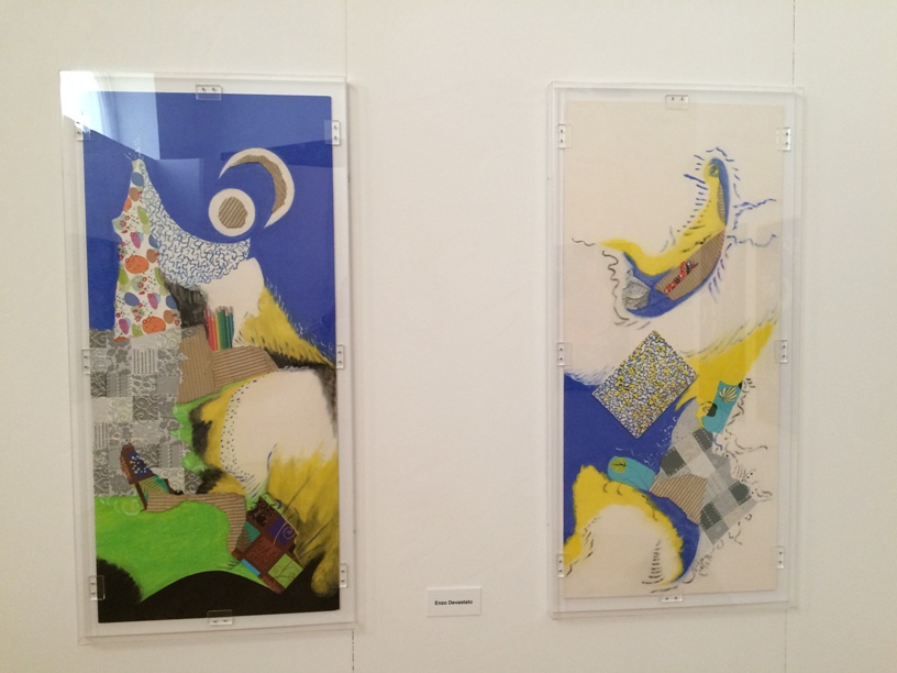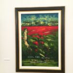 Gigantografie in bianco/nero di grandi maestri del passato allineate in modo da “raccogliere” sotto di sé opere -190 tra pittoriche e plastiche- di artisti di oggi che dai “primi” -da Giotto a Wharol, passando da Caravaggio e Monet- hanno “raccolto” eredità e spunti fecondi.