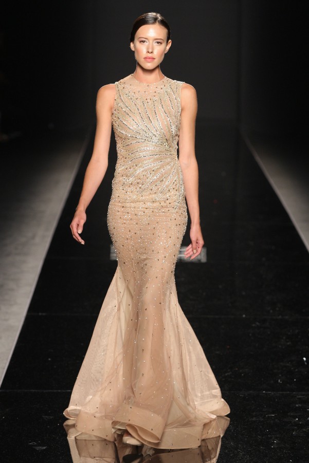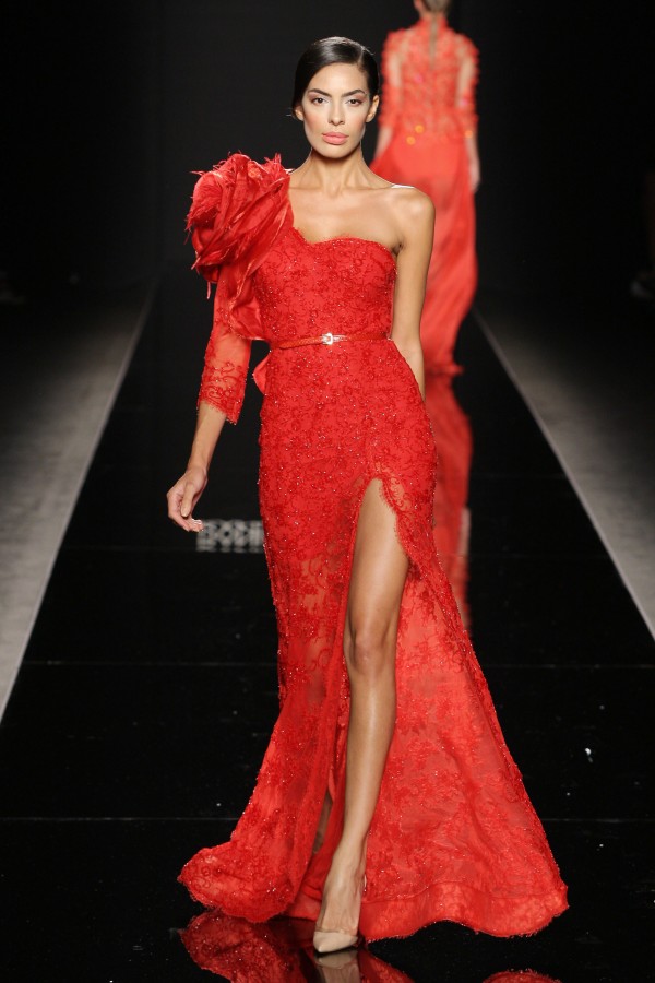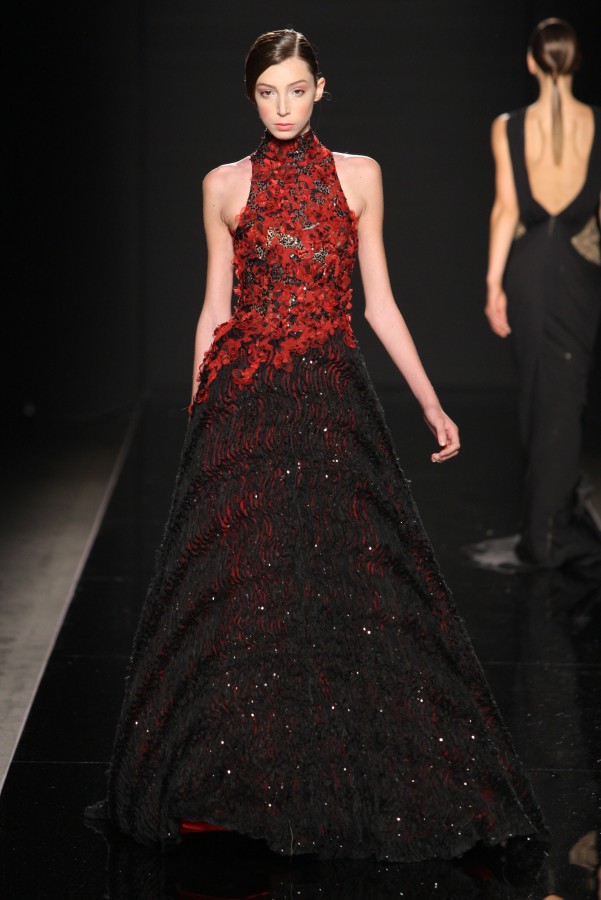 Roba da mille e una notte? No piuttosto da red carpet o da gran ballo. Attraverso i colori Rani Zakhen rappresenta il suo ideale di donna, il rosa per una immagine femminile di donna a volte ingenua ed il rosso per una donna a volte passionale; sempre sensuale, talvolta provocante per le trasparenze di capi che dobbiamo ammetterlo ci sono sembrati tra i più riusciti. Rani Zakhen, designer nato in Libano e cresciuto in Kenia, dal gusto estetico mediorientale ricco fino all’opulenza, debutta a Roma AltaRomAltaModa luglio 2014 con una collezione sicuramente accurata che ha richiesto ricerca e sapiente lavoro di ricamatrici.