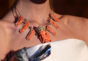 Sono nate così altre collezioni, come Nido, per il concorso Who in on next?, dove fili d’oro si accavallano a disegnare uno spazio circolare un Nido di assoluto dominio femminile, oppure Linee e punti segmenti d’oro disposti ordinatamente in modo da offrire l’illusione ottica di un loro movimento.