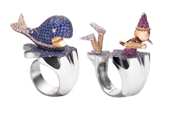 FuturoRemoto è proprio questo. Il lavoro di un visionario. Un brand, un marchio creato da Gianni De Benedittis, per realizzare una sua personalissima visione del gioiello più o meno condivisibile, ma certamente originale. Ogni sua collezione ha il sapore di un’avventura avveniristica. Il nome dato ad una delle sue collezioni “Oggetti geneticamente modificati” OGM, sembra rispecchiare la sua concezione di questo accessorio di lusso. Attingere alla quotidianità di oggetti di uso comune, decontestestualizzarli per dare loro nuova vita in una sfera più alta trasformandoli in oggetti di lusso; elevare ad oggetto d’arte, oggetti quotidiani che non appartengono al contesto della gioielleria. Il gioiello non è concepito come semplice assemblaggio, se pur artistico, di gemme e metalli preziosi, ma come adorno dinamico atto ad esprimere concetti e sentimenti o adorno che si appropria del dinamismo dell’oggetto ispiratore.