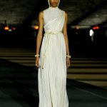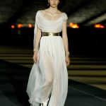 I plissè bianchi candidi dall’effetto piumoso e le trasparenze seducenti evidenziate da monospalla e drappeggi rimandano a giochi di seduzione di moderne Afroditi. Mentre gli argenti e le sete dorate dei pepli morbidi e austeri ci restituiscono delle giovani e rigorose sacerdotesse templari.