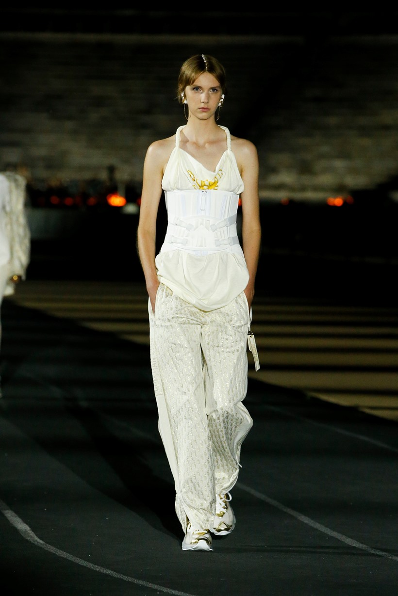 Il richiamo alla magnificenza ellenica che nella moda ha sempre offerto ispirazioni romantiche e piene di charme femminile, improvvisamente si distacca dalla sua primigenia idea estetica e si dichiara messaggero di un nuovo modo di concepire la bellezza molto più disincantata e pragmatica. Al passo con i tempi.