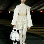 Solo borse da viaggio a baule dallo stile sporty chic e sneakers, uniche calzature della sfilata che si tingono di “divino” e sottolineano la versatilità della collezione che strizza l’occhio al teen age.