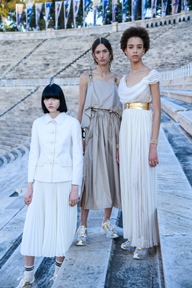 La tradizione artigianale e haute de gamme di Dior anche in questa occasione trova risalto. Maria Grazia Chiuri per questa sfilata si è avvalsa di maestranze artigianali in loco davvero superlative. Dai ricami sartoriali di Tzonevrakis alle pregiate sete del Peloponneso di Silk Line. Una perfetta simbiosi lavorativa dove il passato dal carattere conservativo e storico di antiche botteghe reinterpreta la tradizione secondo i nuovi dettami prêt-à–porter.