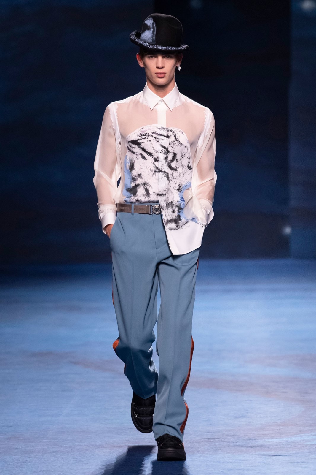 Un vortice di decadente new romantic e sperimentazione punk con raffinati dettagli estetici. Questa in sintesi la sfilata uomo autunno-inverno 2021-2022 di Dior.