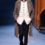 L’eccesso garbato del lusso e l’aria dandy sofisticata e androgina si impossessa di questa collezione che ci regala comunque dei Monsieur introspettivi ed anche un po’ malinconici.