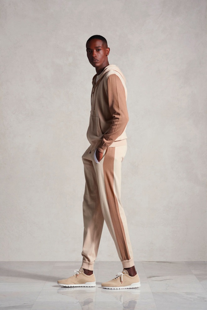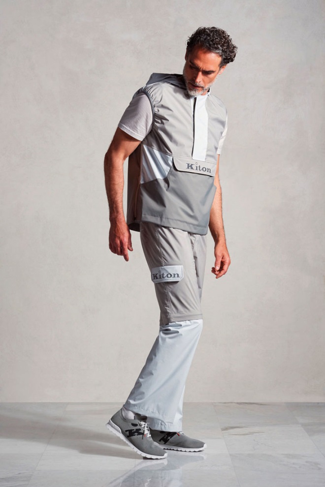 L’abbigliamento casual è composto da molta maglieria, altro elemento importante per Kiton: leggerissimi sottogiacca e polo in jersey di cashmere e seta, a volte con dettagli dipinti a mano; confortevoli tute; blouson che si ispirano al mondo della nautica e del golf. Il cashmere doppio stretch è la novità per il comfort di lusso, mentre le differenze di texture sono la base per i decori.