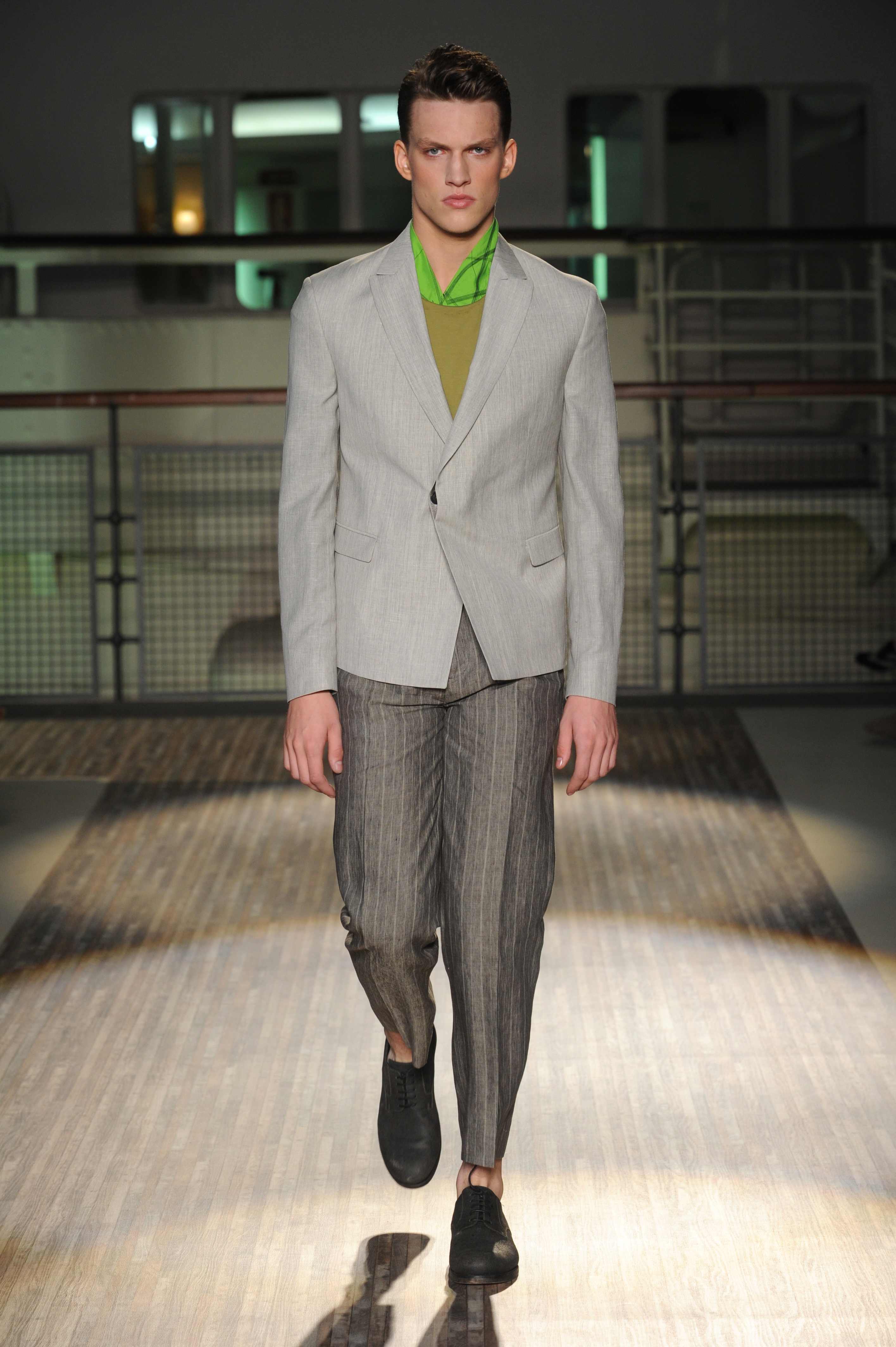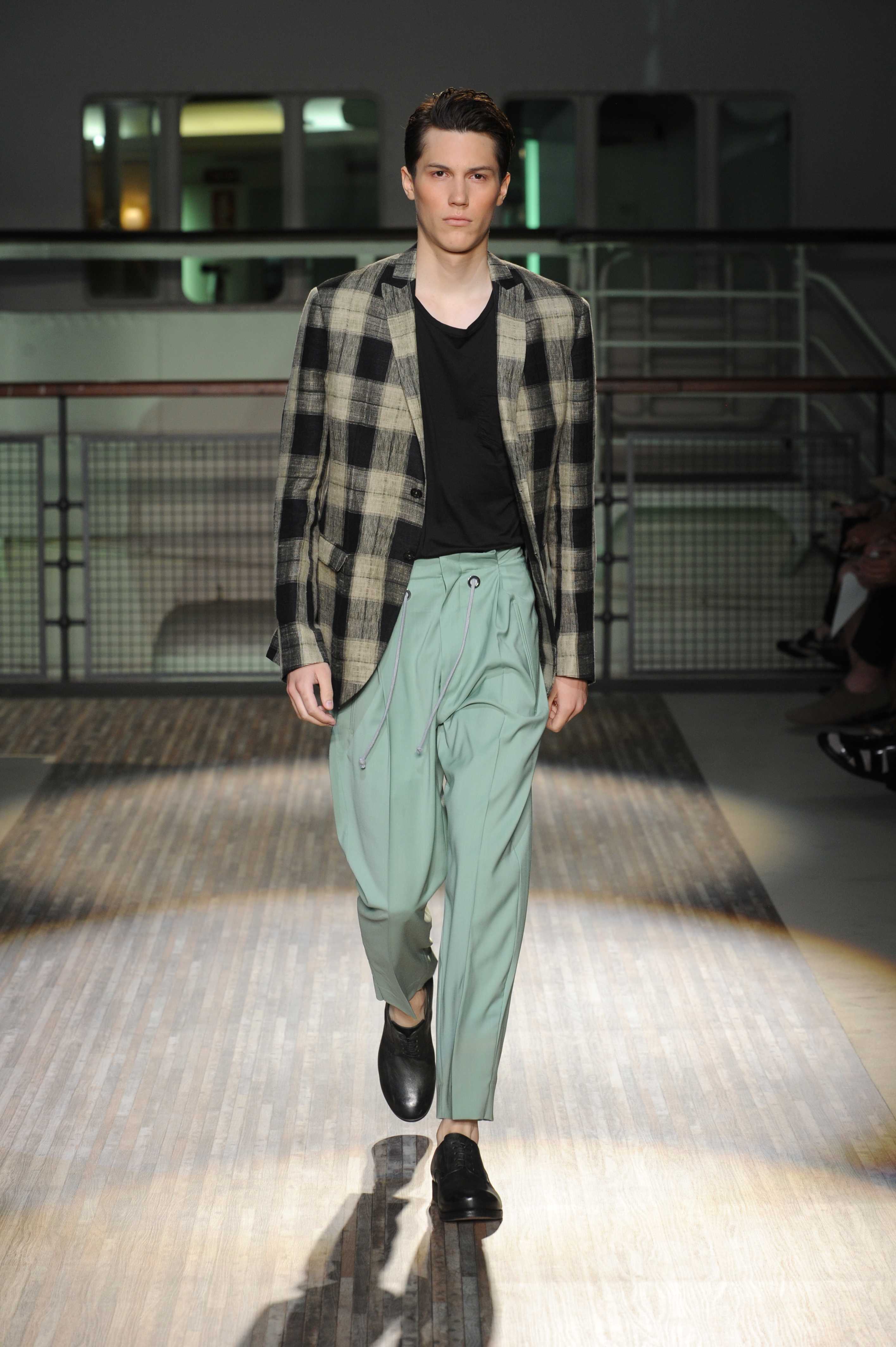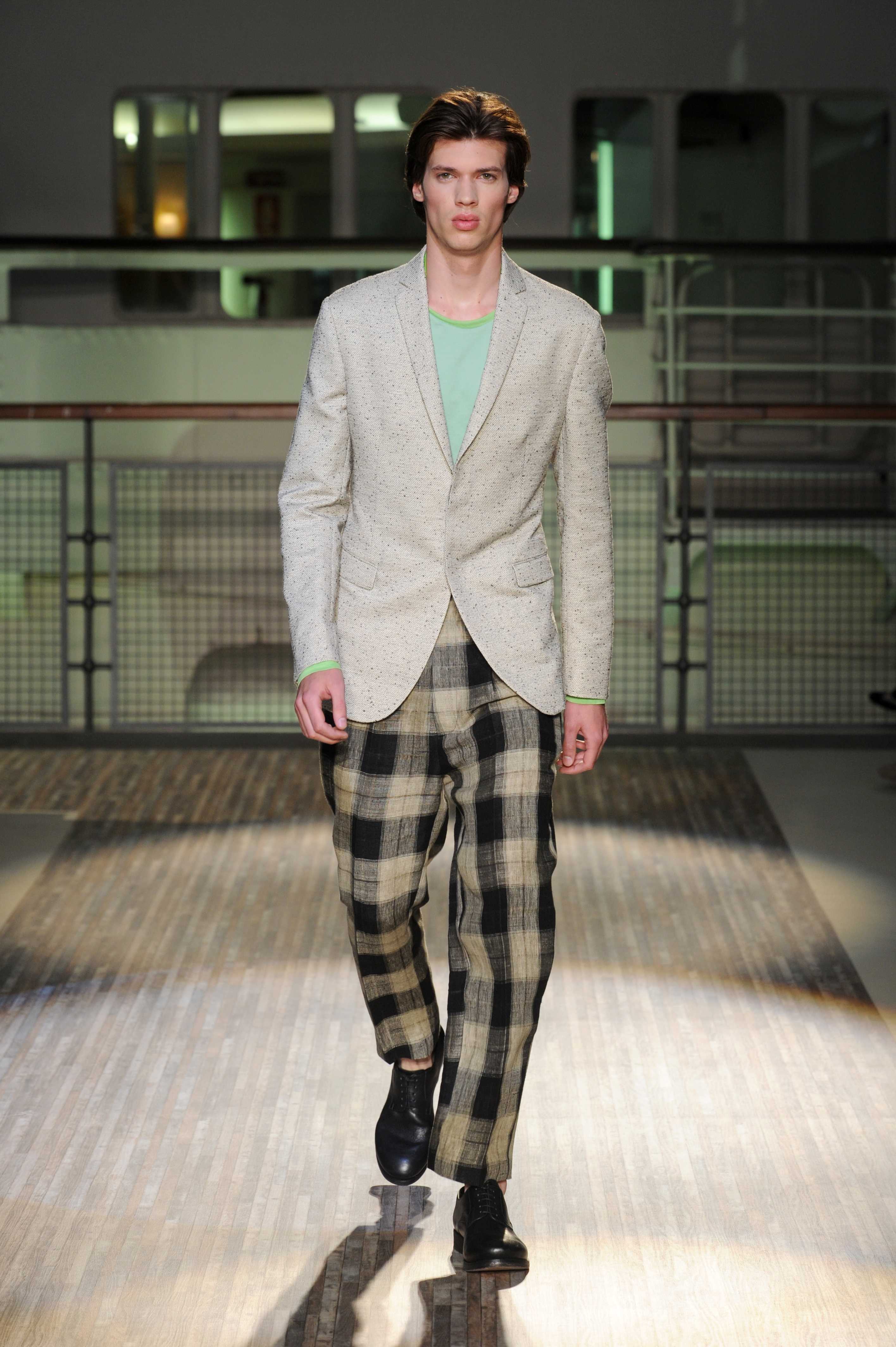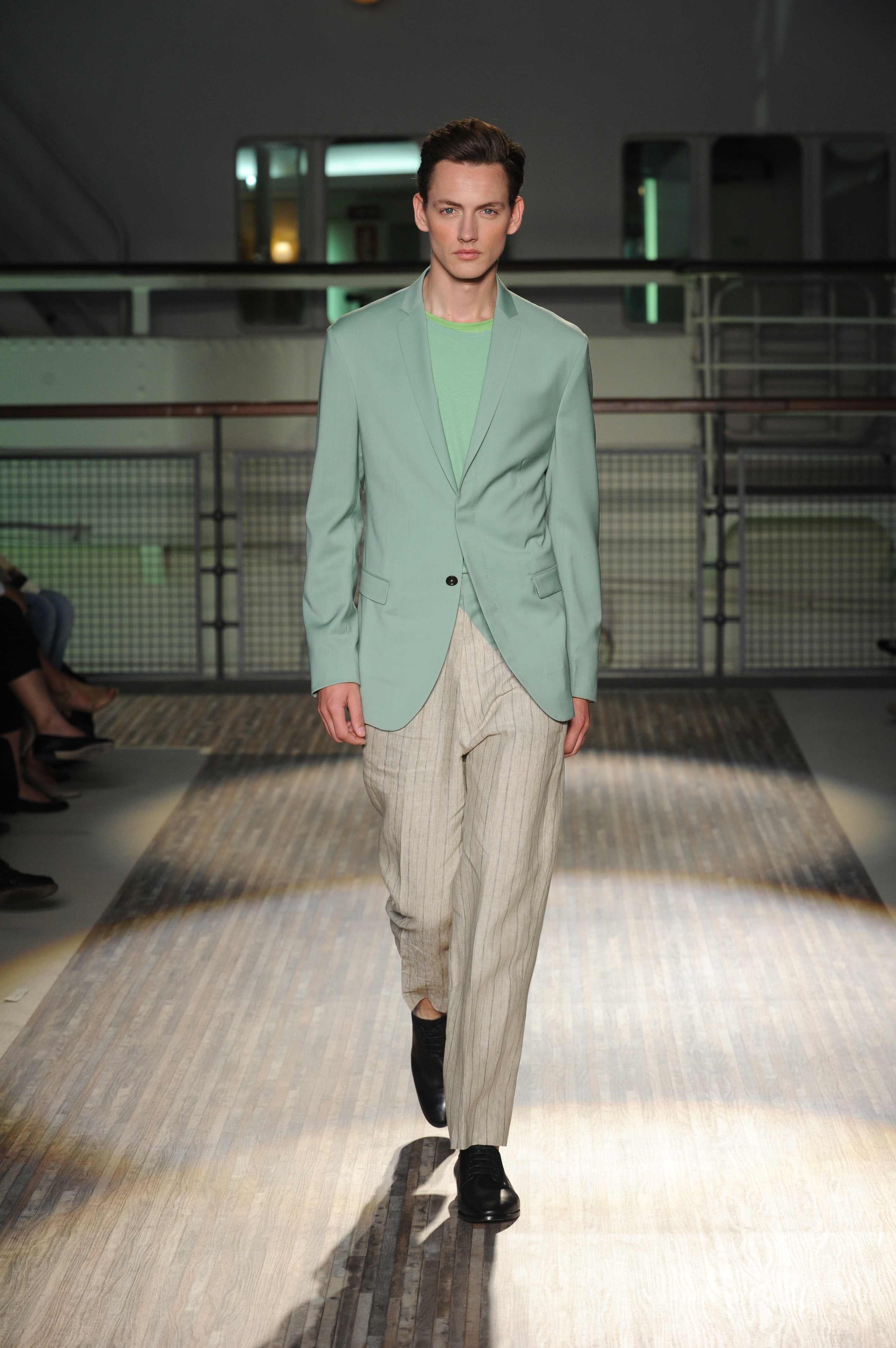 Le giacche sono piuttosto destrutturate e corte, ad incorniciare una silhouette in cui spiccano i morbidi pantaloni in lino e cotone, dai colori pastello, che sfiorano le caviglie per far risaltare le classiche stringate in pelle e camoscio, rivisitate in chiave casual.