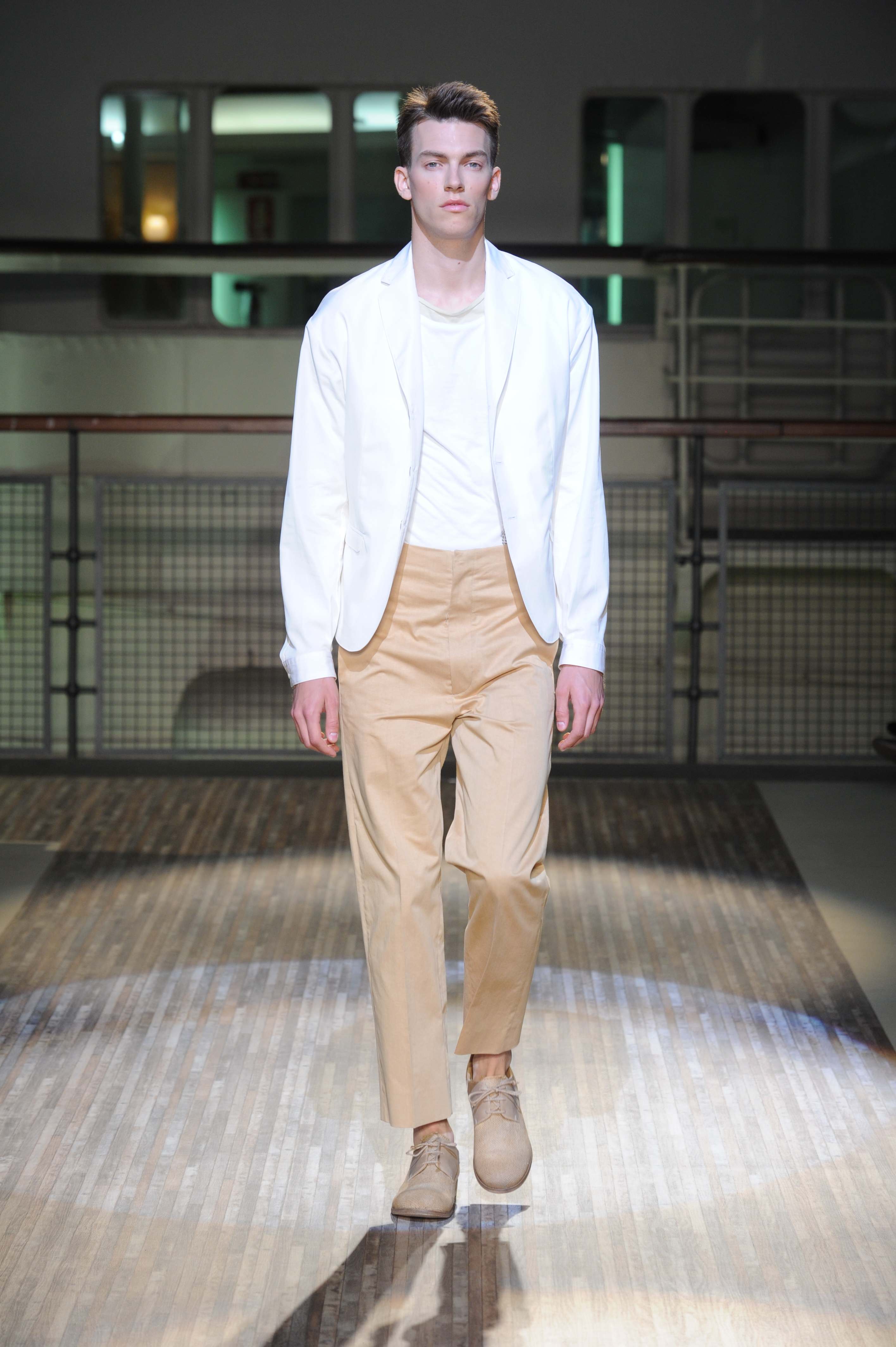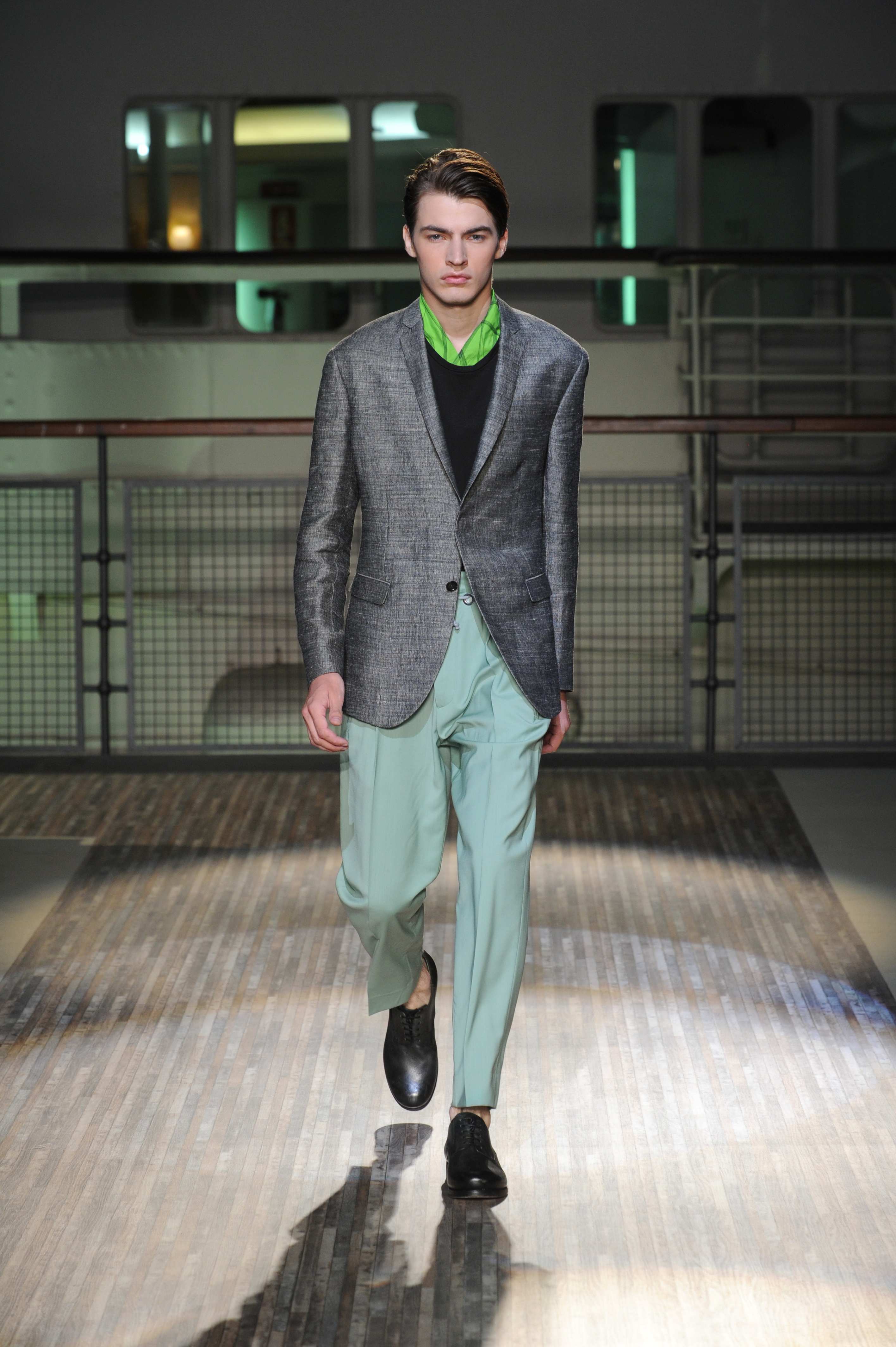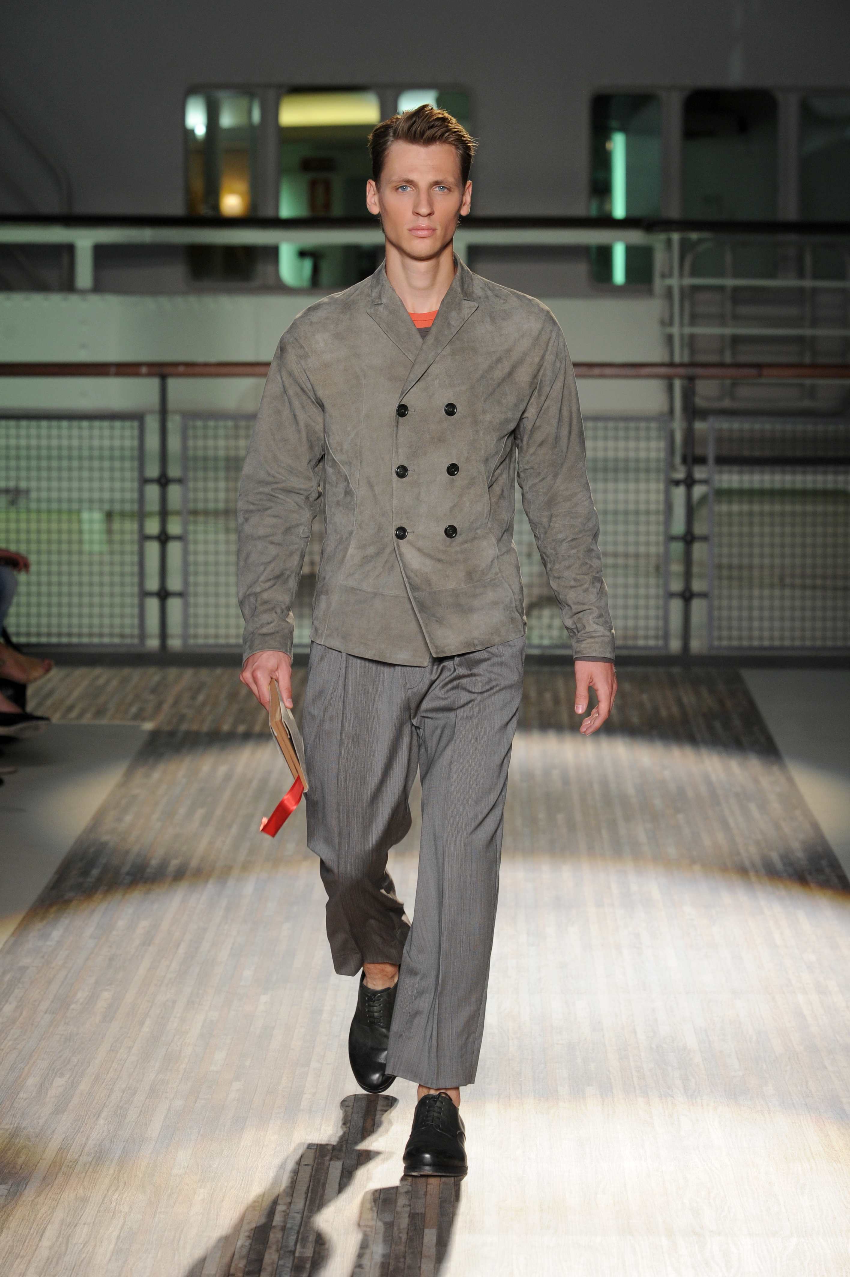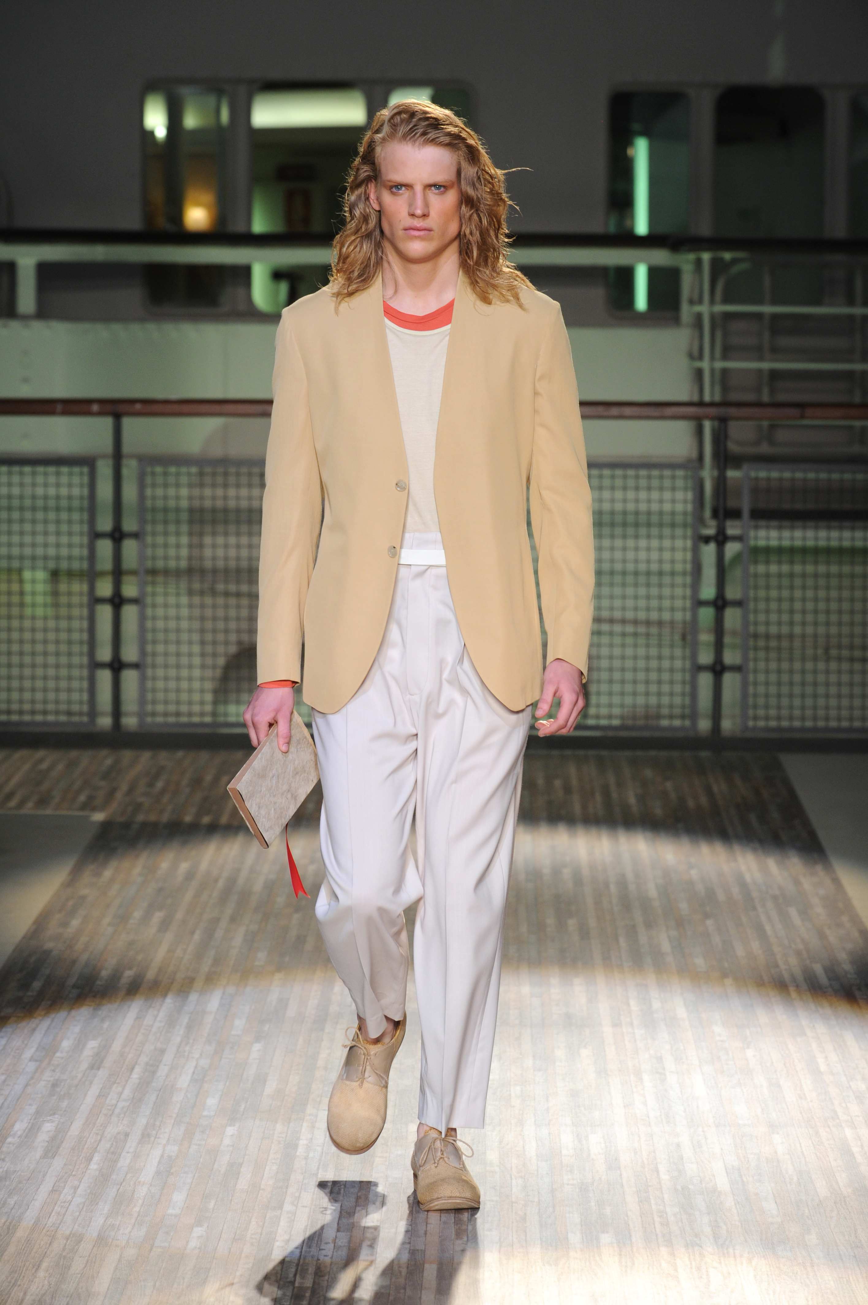 Le giacche sono piuttosto destrutturate e corte, ad incorniciare una silhouette in cui spiccano i morbidi pantaloni in lino e cotone, dai colori pastello, che sfiorano le caviglie per far risaltare le classiche stringate in pelle e camoscio, rivisitate in chiave casual.