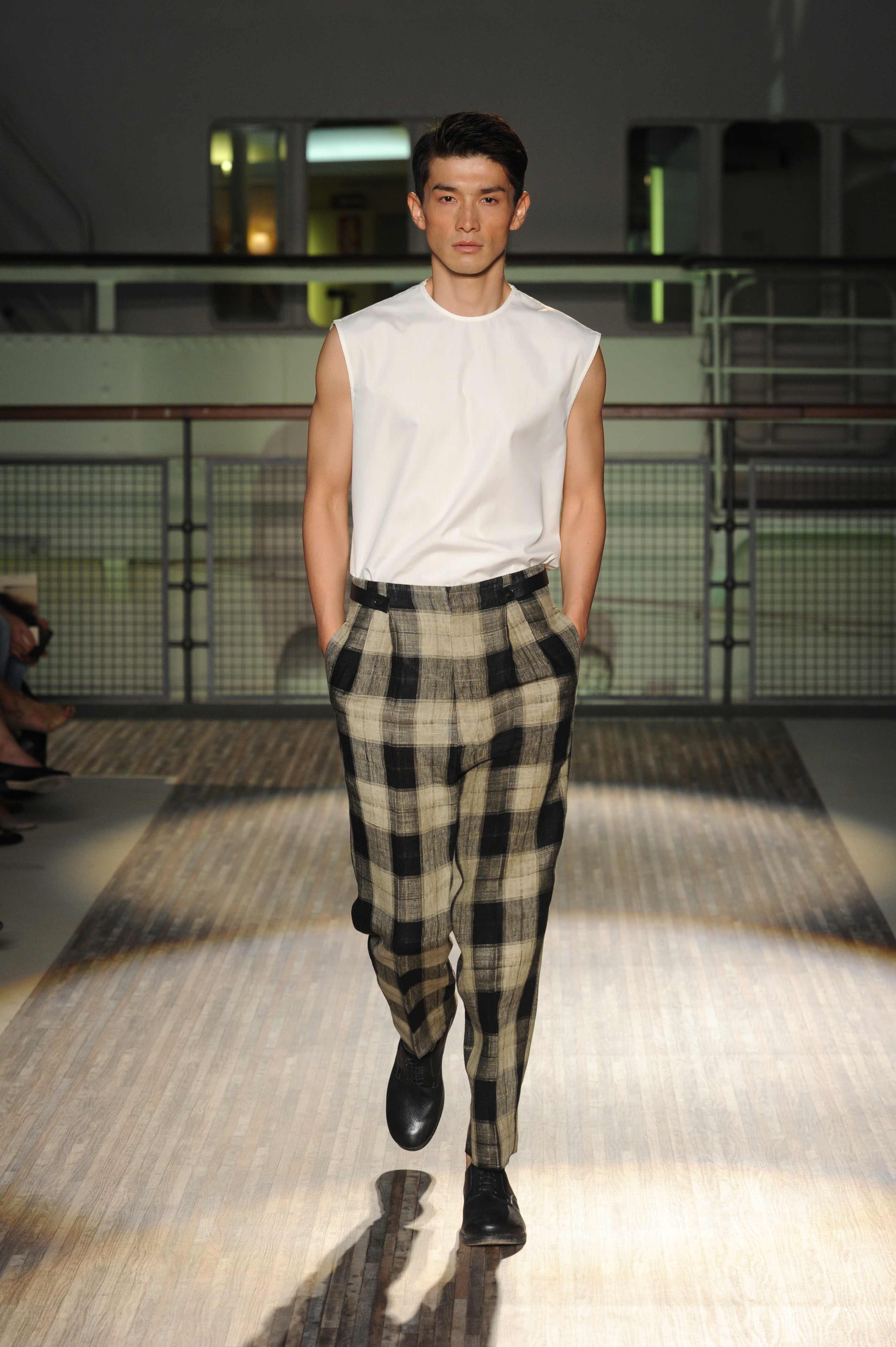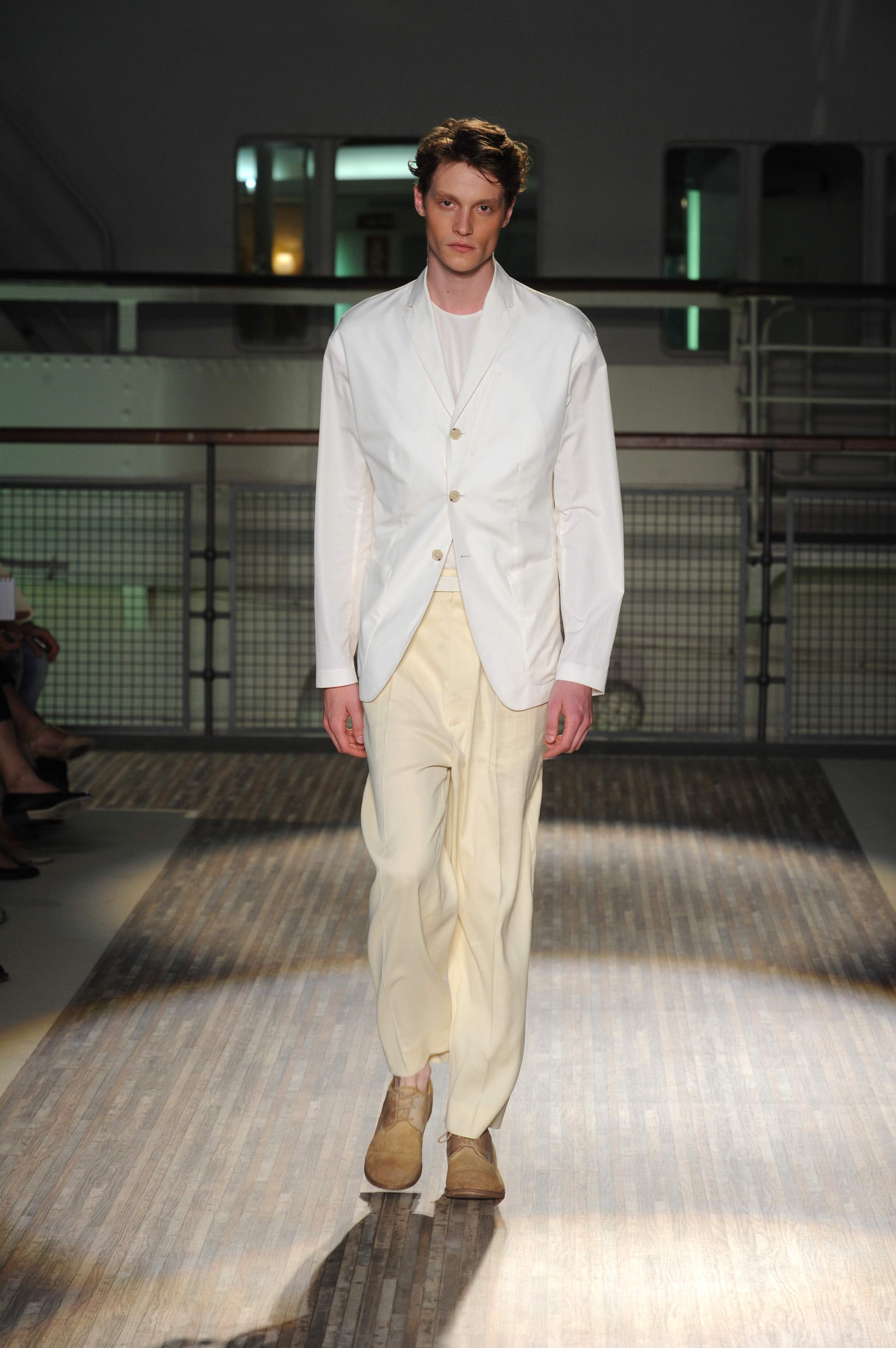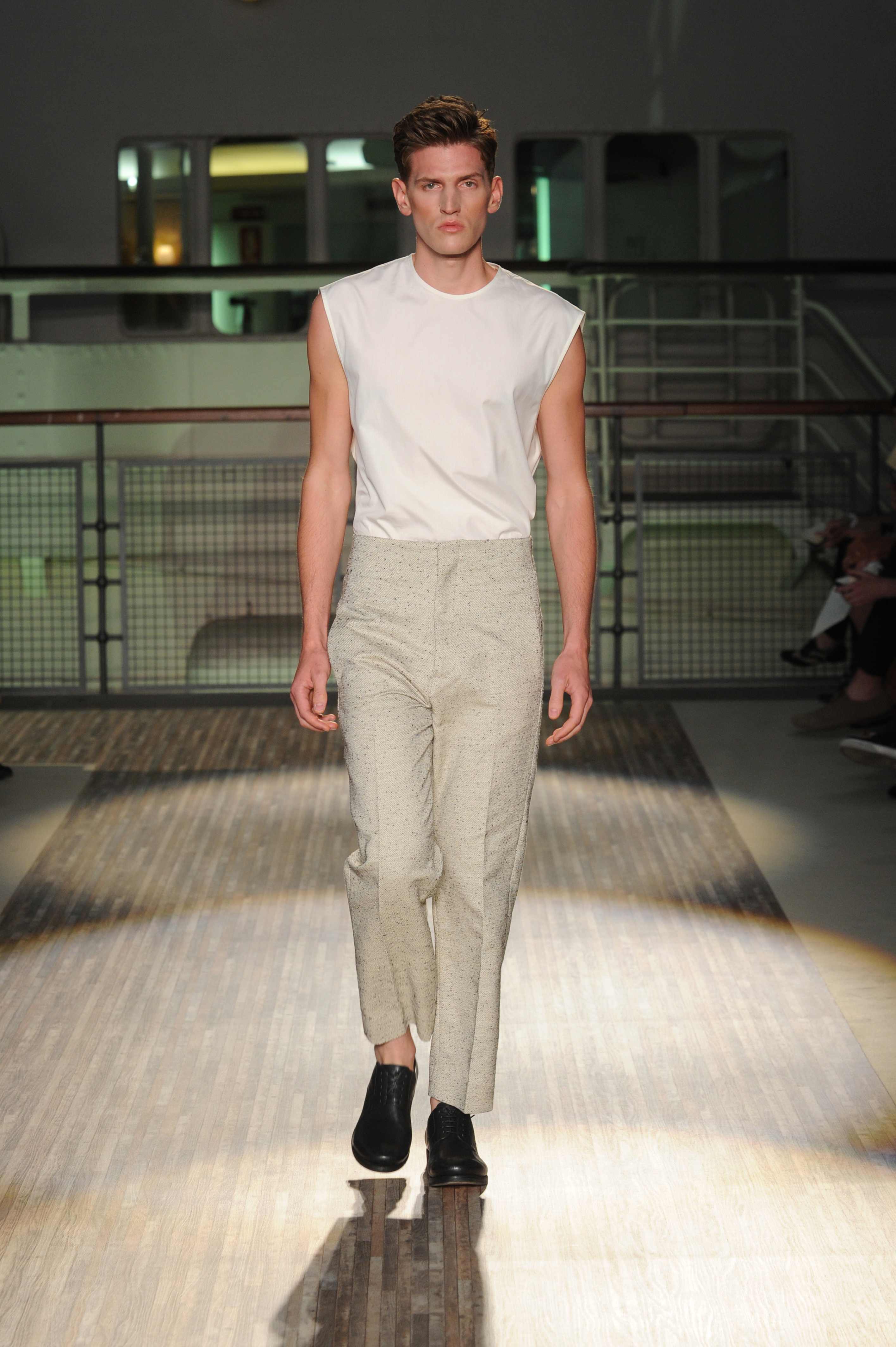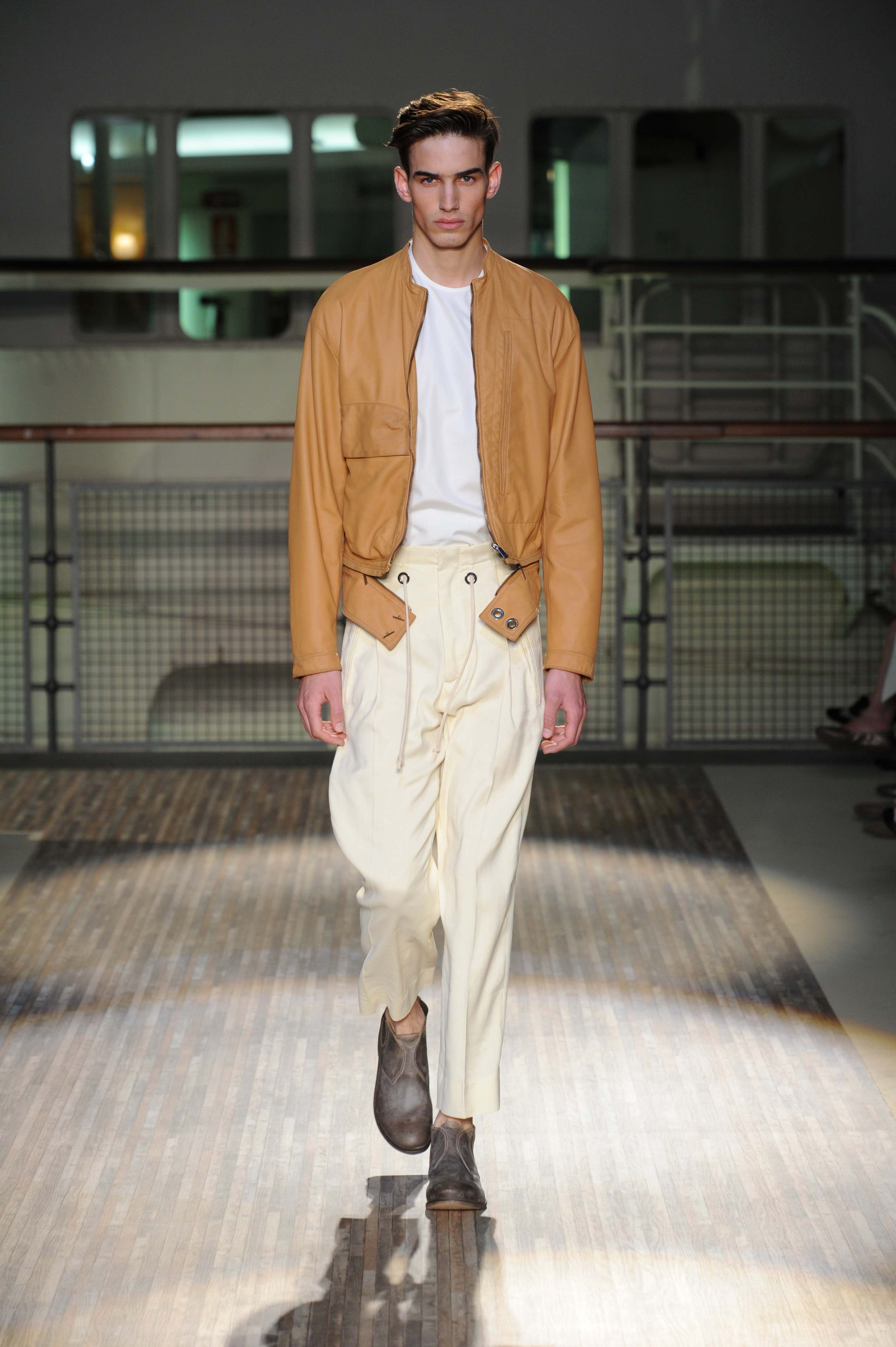 Le giacche sono piuttosto destrutturate e corte, ad incorniciare una silhouette in cui spiccano i morbidi pantaloni in lino e cotone, dai colori pastello, che sfiorano le caviglie per far risaltare le classiche stringate in pelle e camoscio, rivisitate in chiave casual.