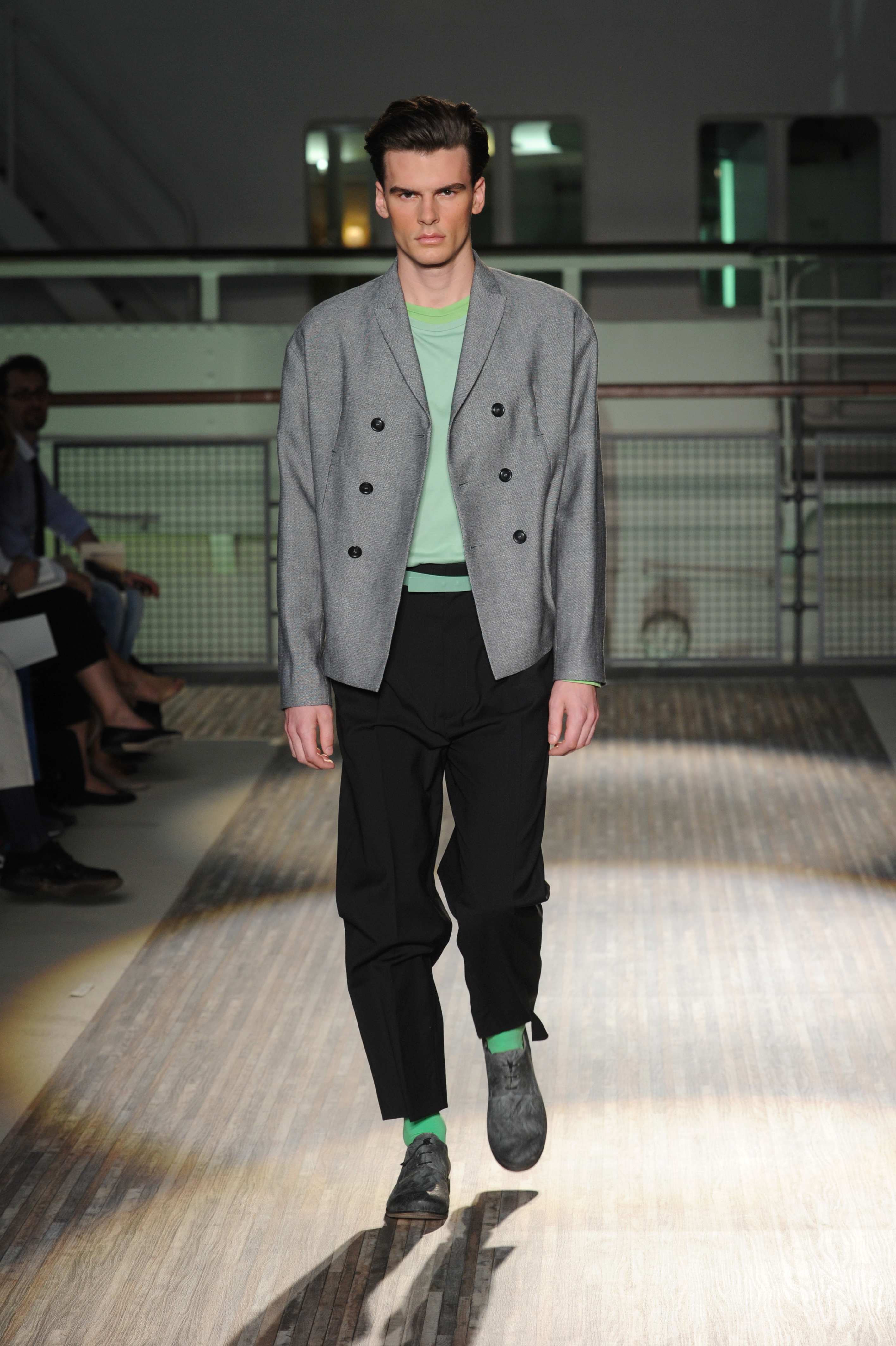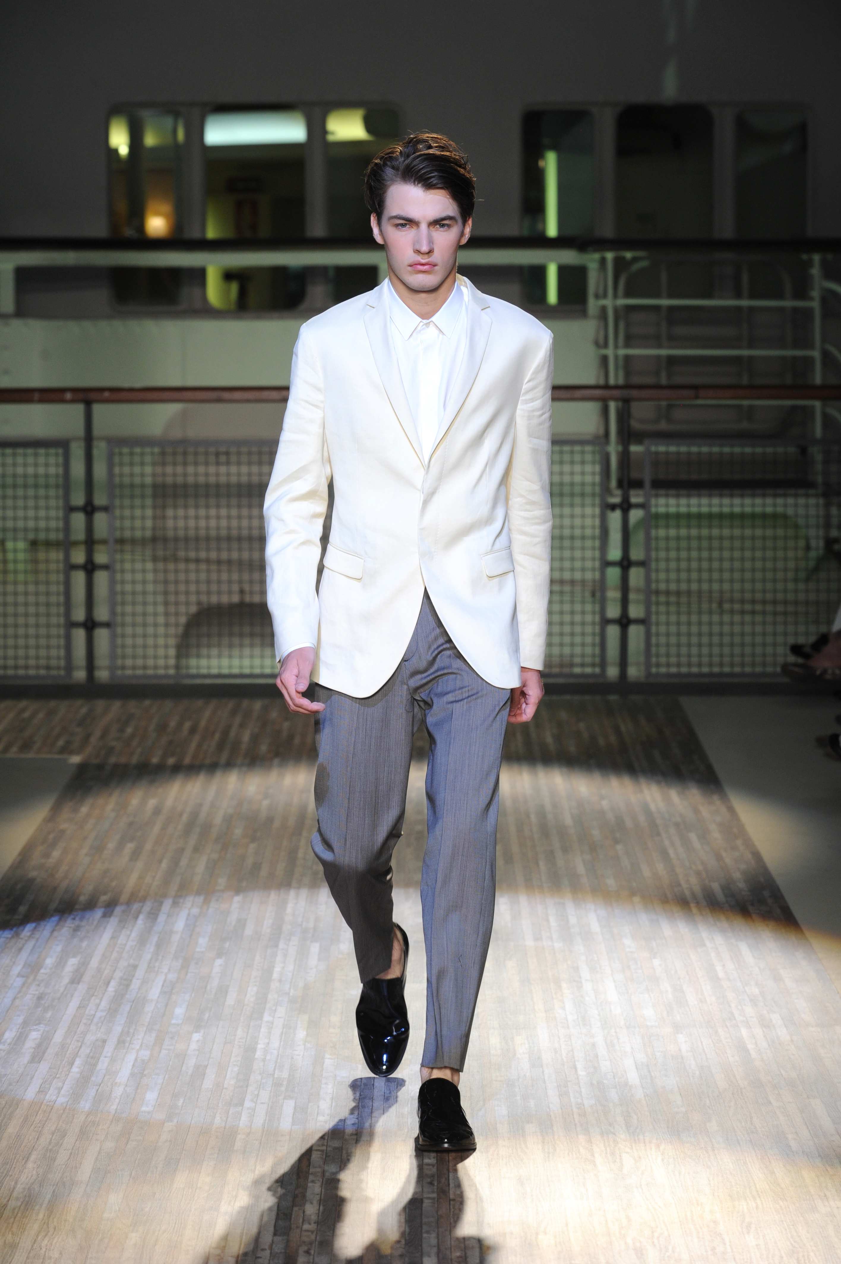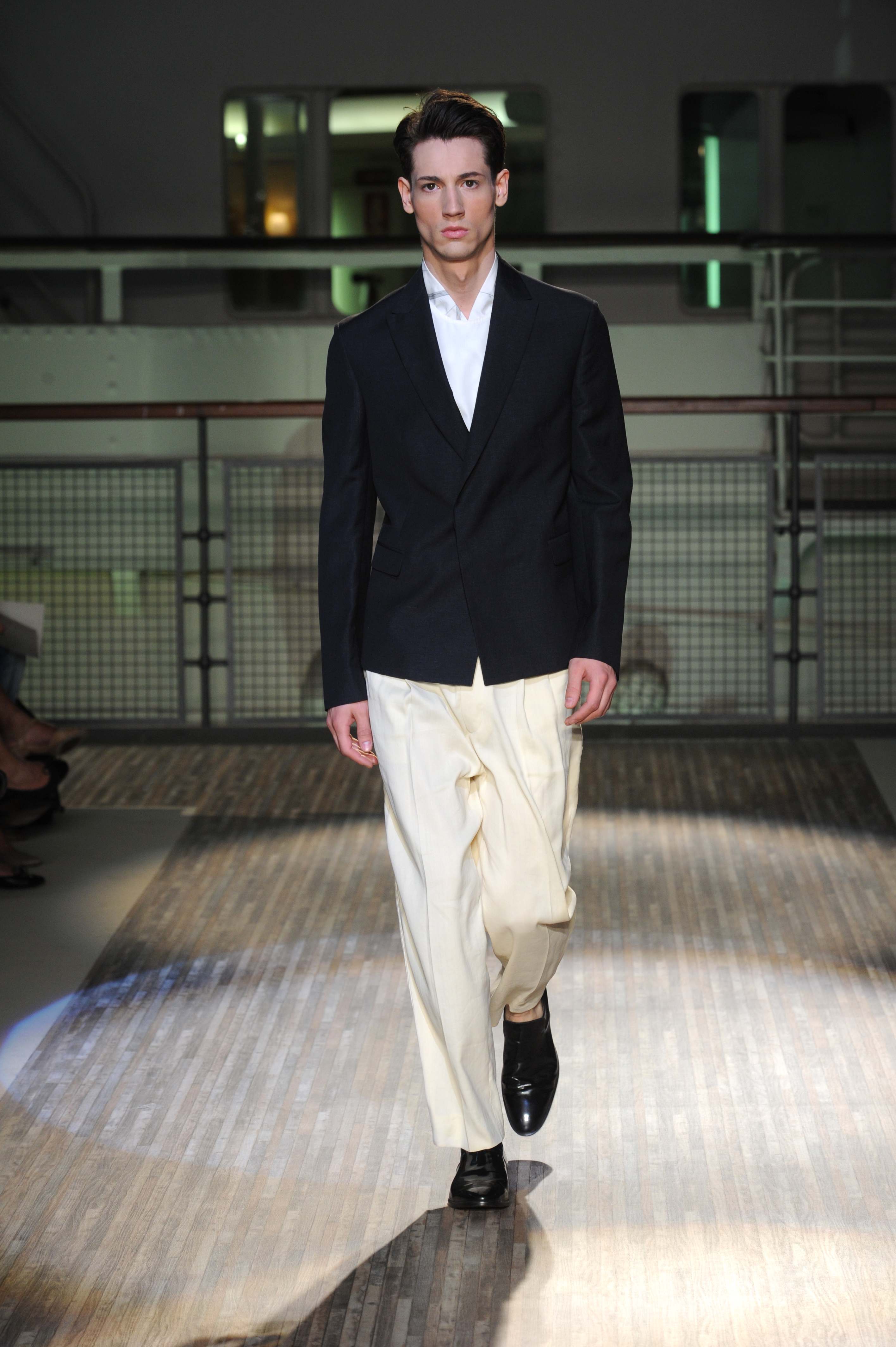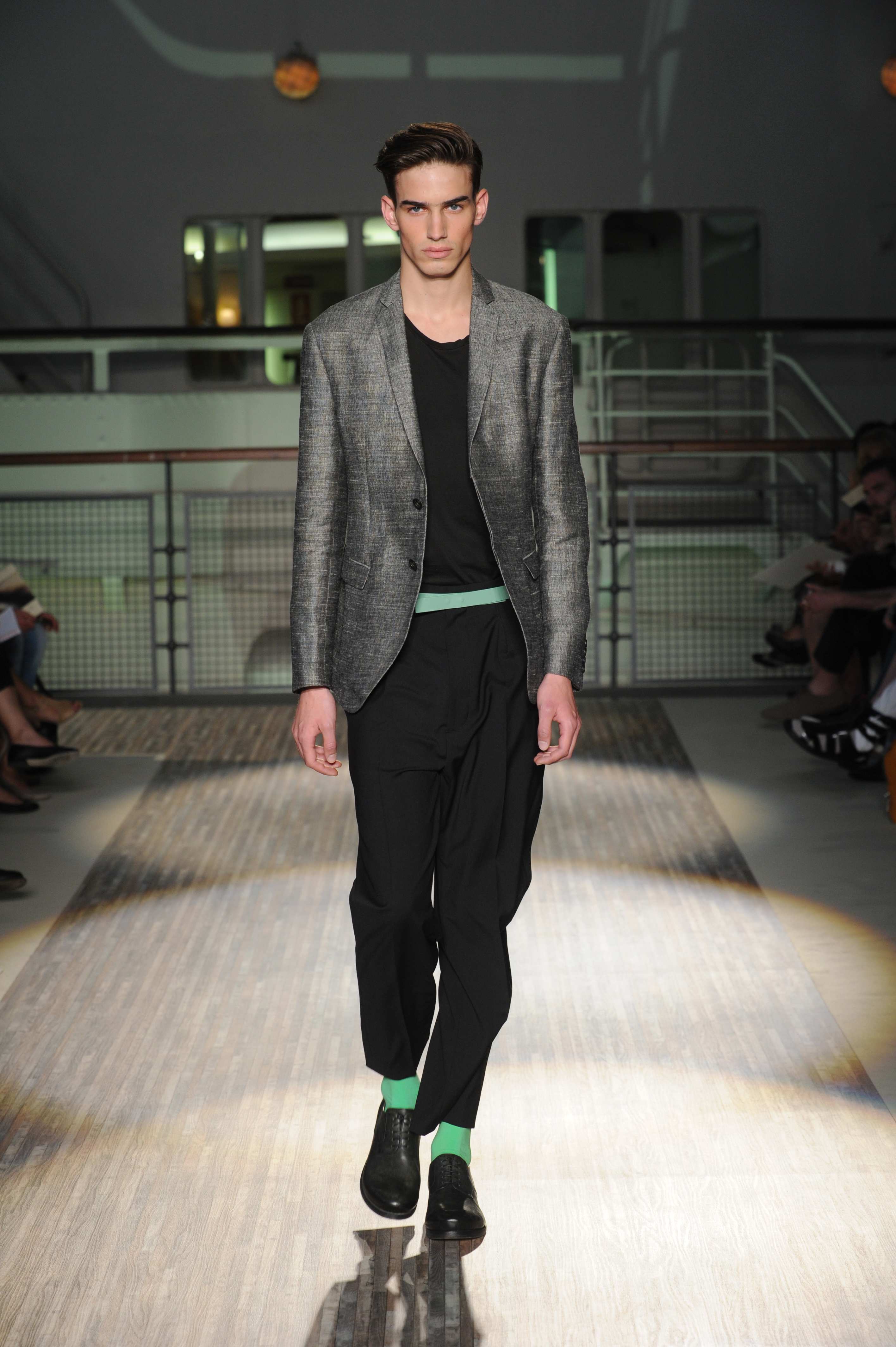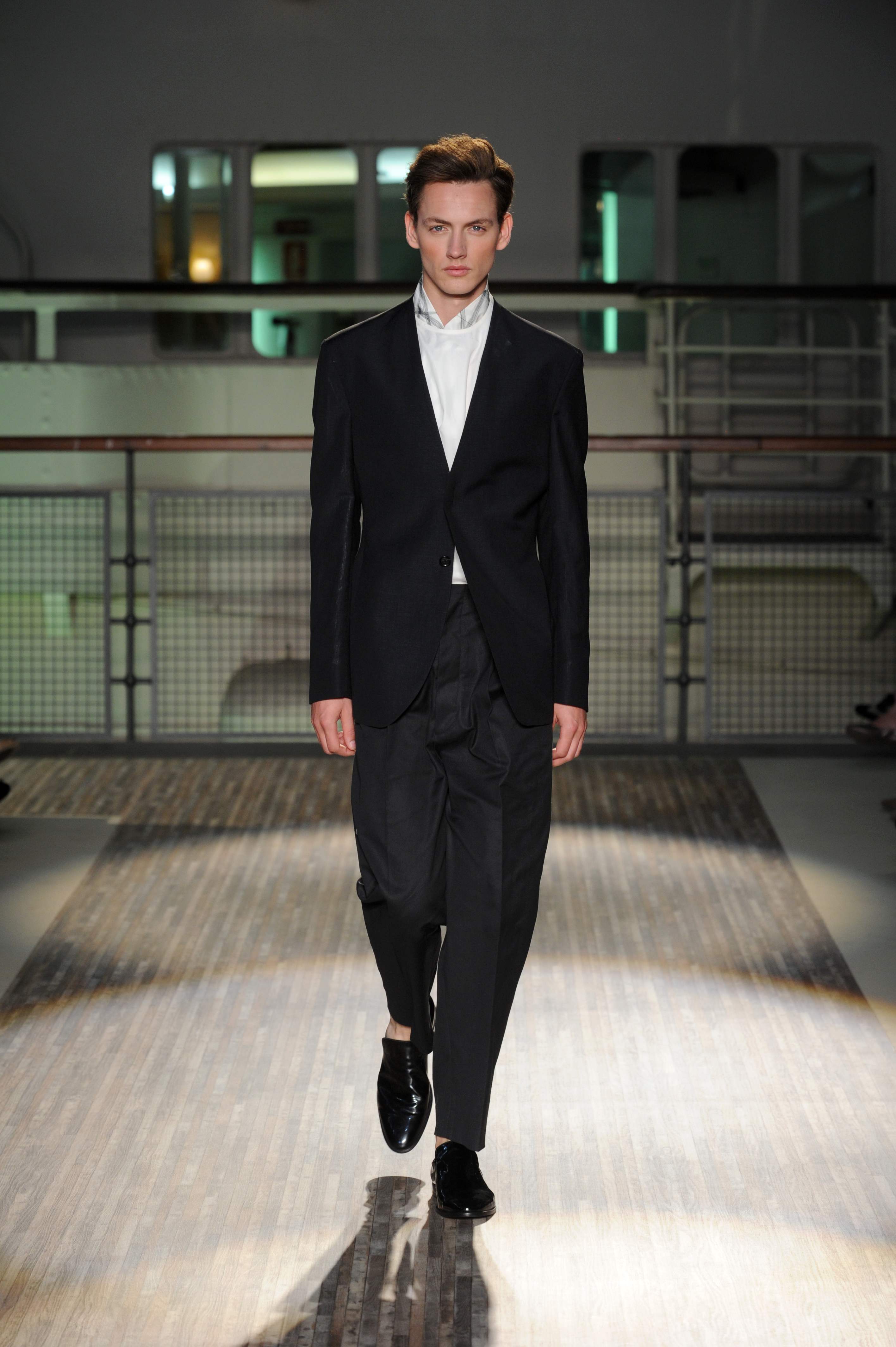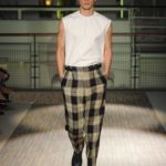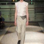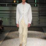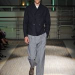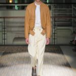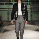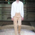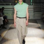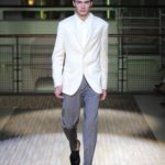Fanno capolino a fine sfilata abiti dal sapore più convenzionale, sia per i tagli che per i colori, probabilmente allo scopo di proporre un immaginario sì contemporaneo e disinvolto, ma in ogni caso attento a quel barlume di classicità che, soprattutto nell’abbigliamento maschile, è doveroso conservare.