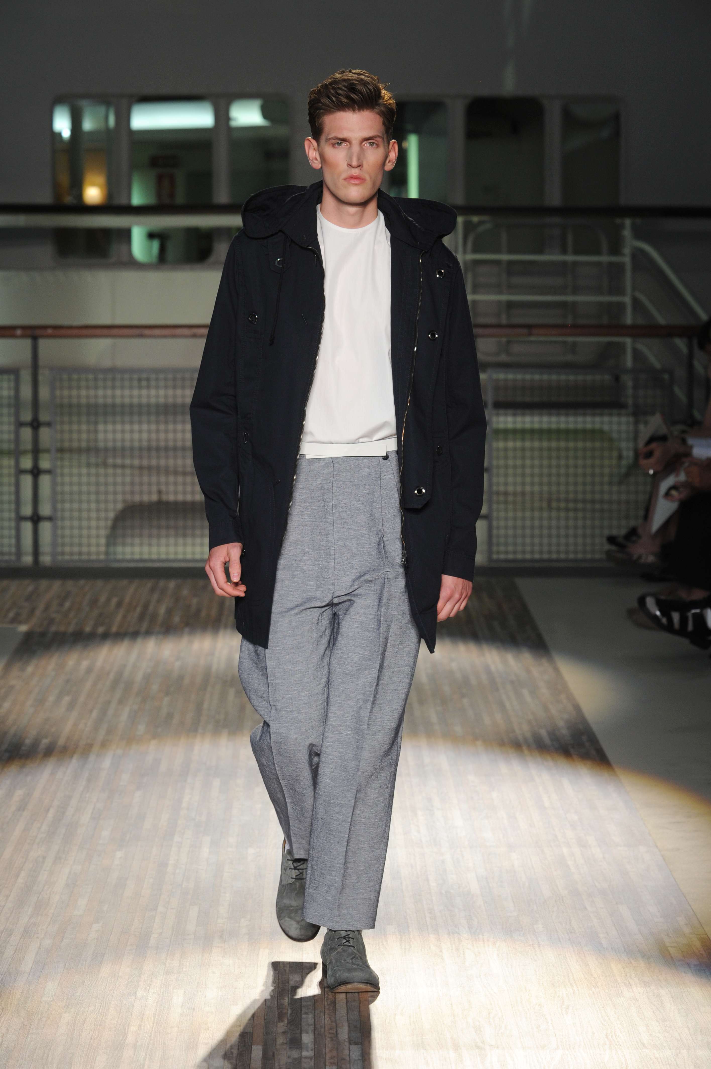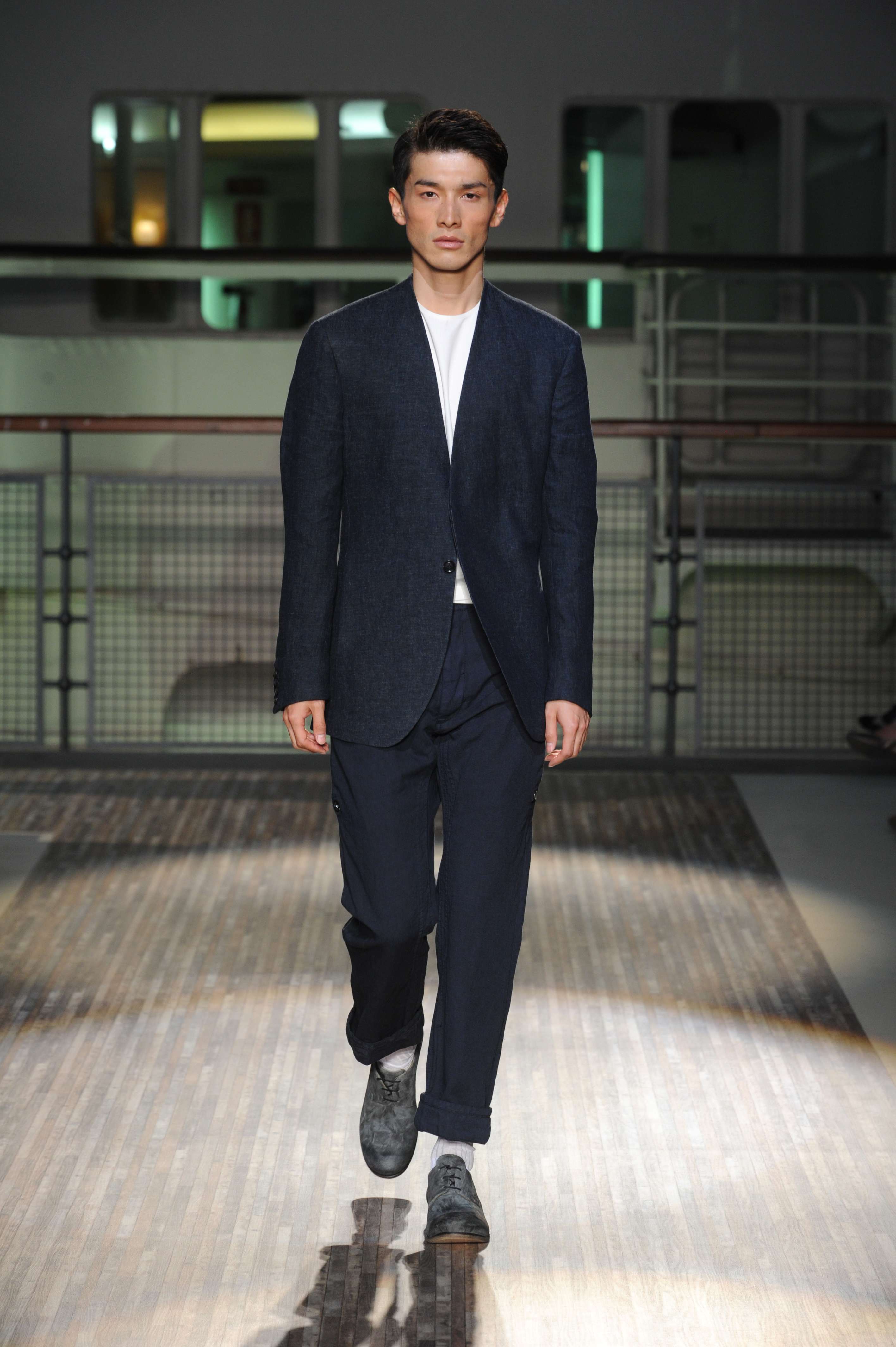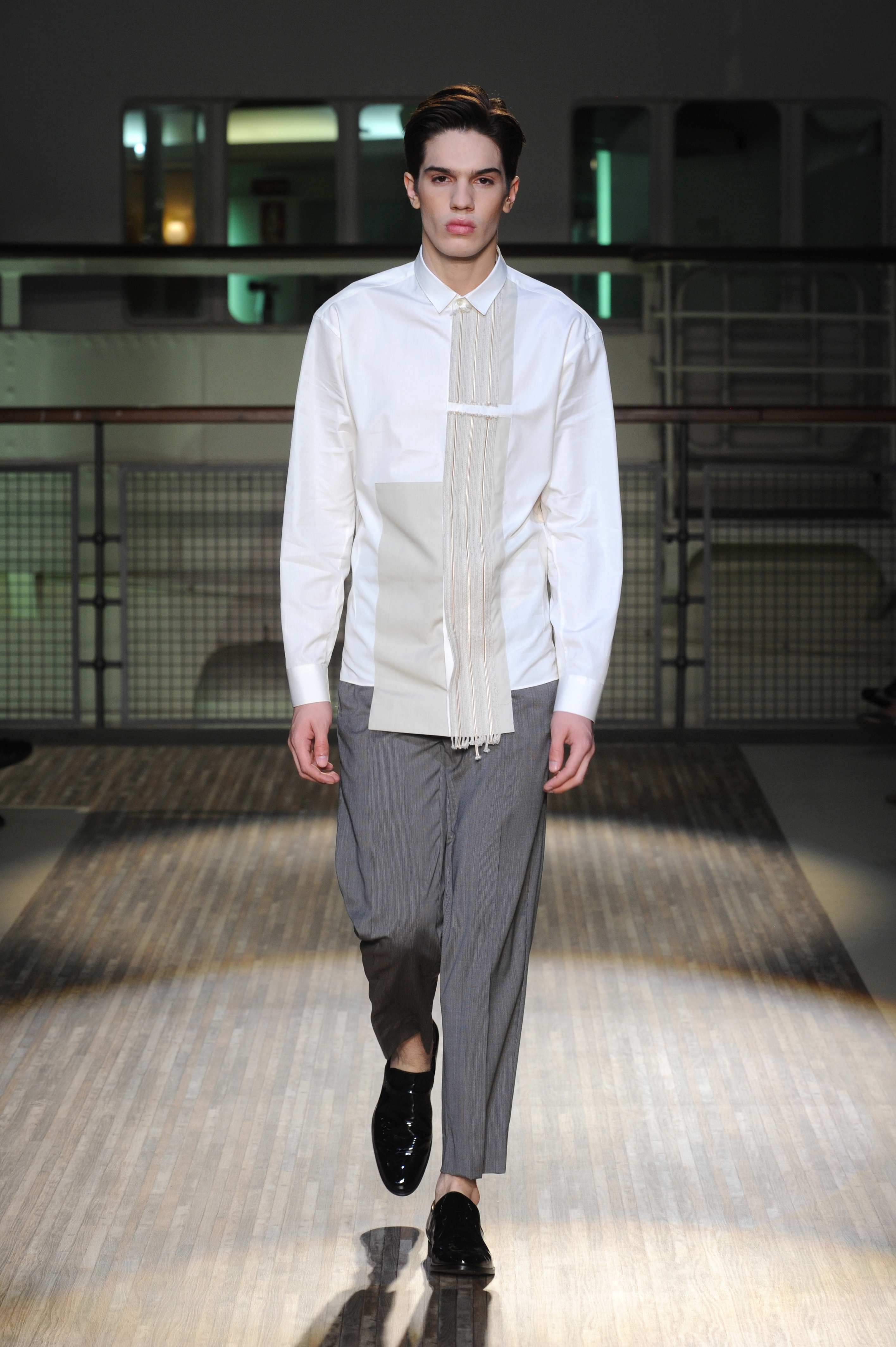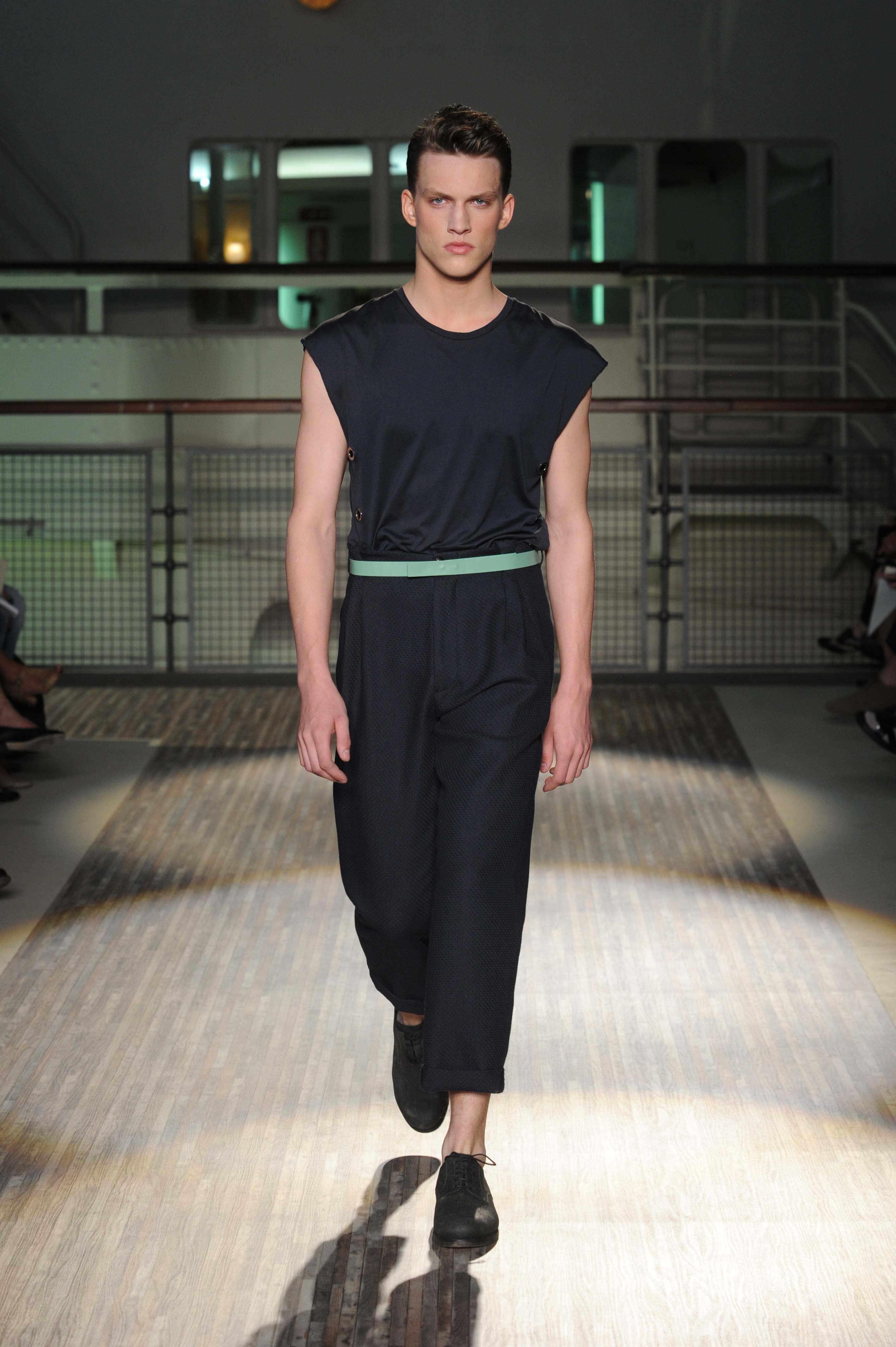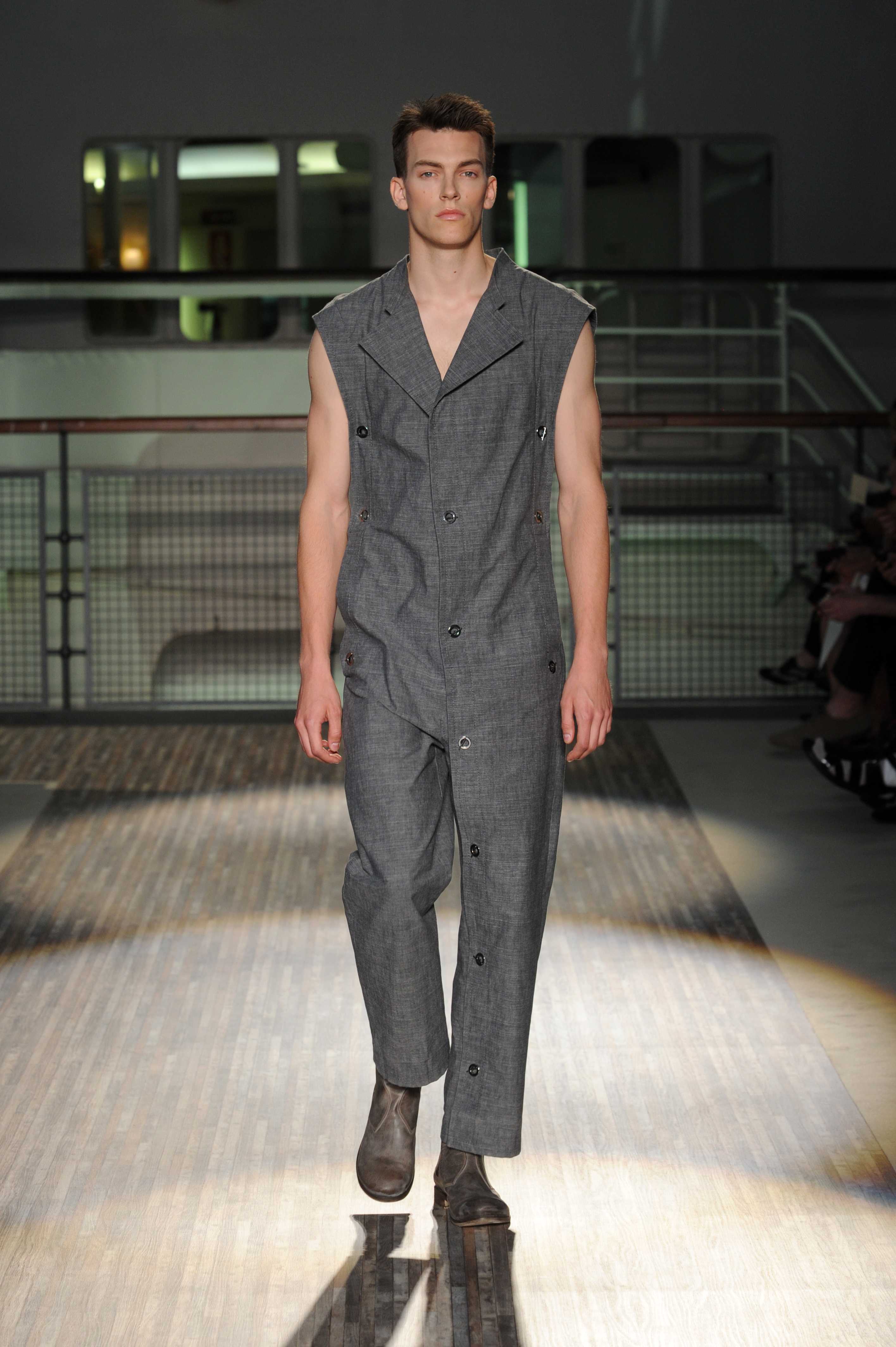 Fanno capolino a fine sfilata abiti dal sapore più convenzionale, sia per i tagli che per i colori, probabilmente allo scopo di proporre un immaginario sì contemporaneo e disinvolto, ma in ogni caso attento a quel barlume di classicità che, soprattutto nell’abbigliamento maschile, è doveroso conservare.