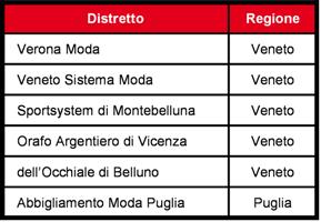 Una mappatura dei 12 distretti italiani del settore tessile-moda-persona (che rappresenta quasi la metà del nostro sistema distrettuale) è stata effettuata dal gruppo bancario Unicredit in collaborazione con la Federazione dei Distretti Italiani al fine di creare, attraverso un’analisi quali-quantitativa “sul campo”, i profili strategici delle singole realtà territoriali e di individuare per ciascuna le più consone ipotesi progettuali di sviluppo.