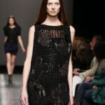 Interessante la seconda parte della collezione, anche se meno inserita in questo contesto avventuroso: sono i capi in maglia tessuta a rete con intarsi a effetto mohair ed intarsi di pelle borchiata.