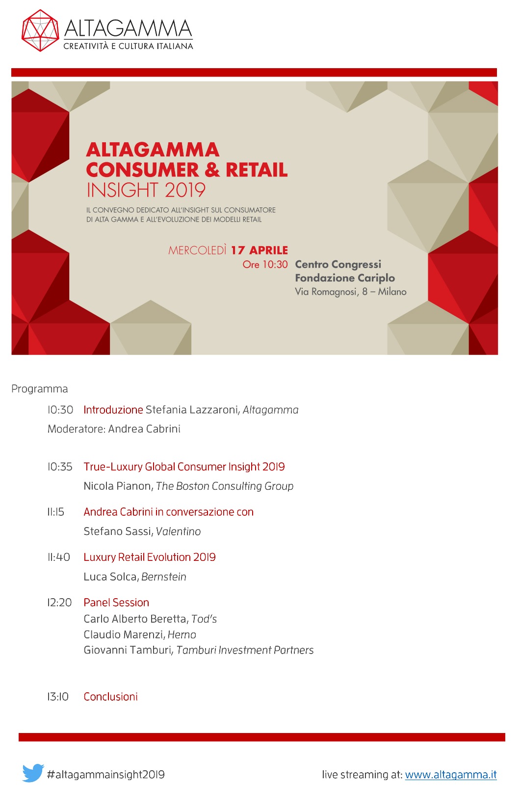 Le evidenze degli studi presentati al convegno di Fondazione Altagamma sono state commentate da Carlo Alberto Beretta, Direttore Generale di Tod’s, Claudio Marenzi, Presidente e CEO di Herno e Presidente di Confindustria Moda e Giovanni Tamburi, Presidente e AD di Tamburi Investment Partners, Stefano Sassi, CEO di Valentino, il quale ha aggiunto ai trend sopra citati la loyalty dei clienti, la brevità dei cicli operativi, la disintermediazione tra consumatori e aziende.