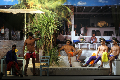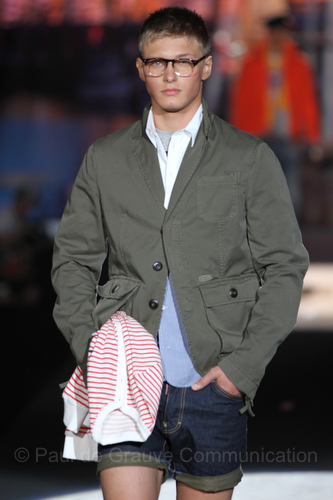 Sulla passerella si sono alternate quattro scenografie, quattro colonne sonore, quattro look diversi: sportivo, vacanziero, cittadino e, infine, rock.