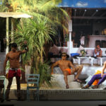 Sulle spiagge di Mykonos, invece, sfila un guardaroba marittimo, fatto di costumi, pants, teli mare, cappellini e flipflop coloratissime (arancio, azzurro, fucsia, verde blu acido,”¦).