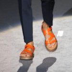 Siamo a Firenze. Sfila un uomo dallo stile vagamente sixsties: raffinato e chic nei completi sartoriali, che si compongono di giacche a doppio petto e pantaloni corti alla caviglia.