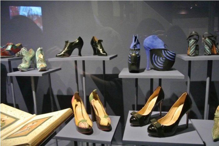 Dalla scarpetta di cristallo di Cenerentola alle babbucce orientali con punte smisurate, dalle pianelle veneziane con zeppe di 50 cm alle scarpe di Madame de Pompadour con il tacco fissato in mezzo alla suola, dall’Armadillo Shoe di Alexander McQueen, la prediletta da Lady Gaga, ai vertiginosi platform blu Super Elevated Gillies di Vivienne Westwood (che fecero ruzzolare in passerella persino Naomi Campbell), dalla Ballerina Ultima di Christian Louboutin con tacco da capogiro alle scarpe disegnate dall’archi-star Zaha Hadid con zeppa alta 20 cm, l’esposizione londinese evoca mondi distanti nello spazio e nel tempo, che quasi sempre tuttavia riconducono alla seduzione e al feticismo.