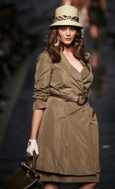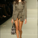 Si è voluto vedere nel gusto militaresco che ha invaso le passerelle anticipatrici di questa incipiente stagione un segnale del desiderio di potenza e di appartenenza ma si può anche interpretare come la nostalgia di indossare qualcosa che ci immerga nella natura, nei suoi colori sottobosco (Robin Barcus ricopre di foglie le sue modelle), nei suoi kaki polverosi, nei suoi grigioverdi che simulano i mantelli di certi animali quando mutano la pelle o le piume o quando si mimetizzano con l’ambiente.