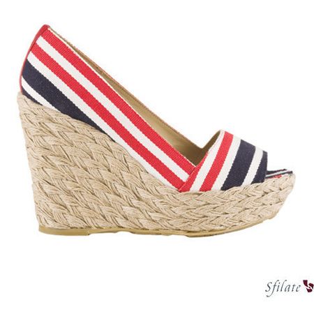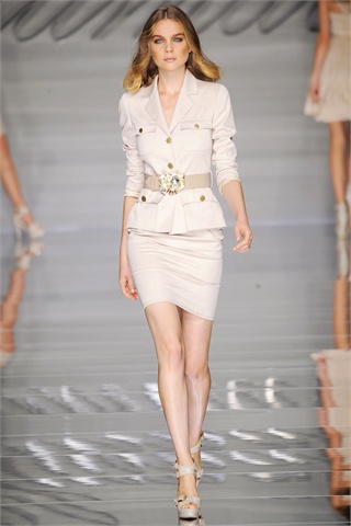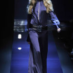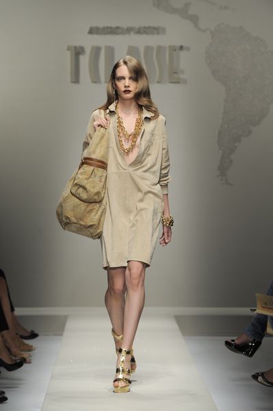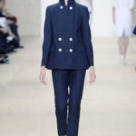 E poi c’è il gusto per l’esplorazione, di terra e di mare. Per la prima, il tema della divisa ben si inserisce: bermuda, sahariane, pantaloni a vita alta multitasche, cappelli a visiera, foulard danzanti per alleggerire l’eccessivo rigore, occhiali tondi, cinture di cuoio morbido, stivali leggerissimi, zaini rivisitati. Per la seconda, via libera allo stile “cruise” che ormai è presente in quasi tutte le collezioni, dove i rossi, i bianchi e i blu si esprimono, oltre che nelle classicissime righe, nelle piccole fantasie cravatta pseudo-optical: bellissime le piccole giacchine senza bottoni, i calzoni un filo corti, le borse di vernice a tre colori, i mocassini dove, a volte, il distacco dal bicolore viene creato da una raffinata impuntura a contrasto o, qualora ci fosse il tacco, dalla sua netta differenziazione rispetto al resto della scarpa.
