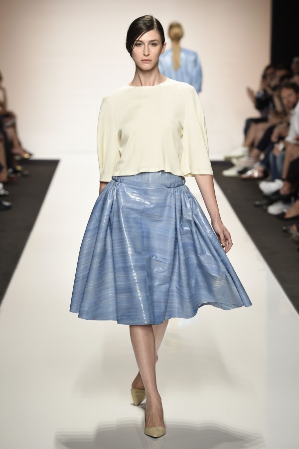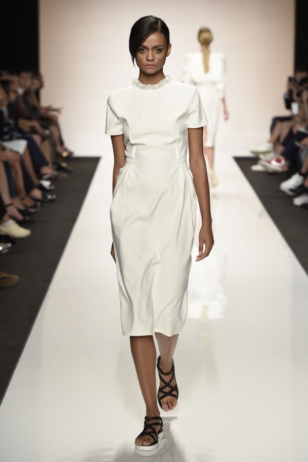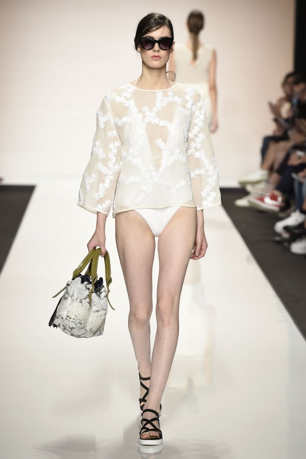 Un concetto preciso di femminilità quella che ha sfilato per il brand Greta Boldini ad AltaRomAltamoda a luglio 2014 : delicata, garbata, fragile, elegante, forse un po’ “patinata”, ma non dolciastra. Un concetto di femminilità in controtendenza e perciò nuovo; una lieve vena di sensualità che potremmo definire anche solo consapevolezza dell’essere donna, voglia di mostrarsi aggraziata, quasi una presenza lieve che attira lo sguardo, si lascia guardare, e resta nella memoria come un sogno. Quindi una femminilità più eterea rispetto alla precedente collezione di gennaio 2014. E ciò lo diciamo sebbene un paio di uscite, costumi da bagno, sono risultati osè tradendo il mood raffinato della collezione. Il duo che firma Greta Boldini sono Alexander Flagella, designer di accessori, e Michela Musco, stilista come lei stessa si definisce “ossessionata dalla precisione dei dettagli”. Anche loro finalisti di una edizione, la nona, di “Who Is On Next?”, il progetto di scouting ideato e realizzato da Altaroma in collaborazione con Vogue Italia che si rivela capace non solo di individuare talenti ma anche di accompagnare nuove leve di creativi nel difficile percorso dell’affermazione del brand.