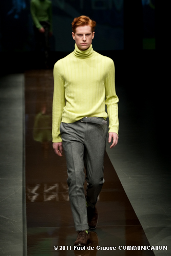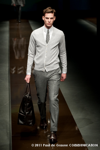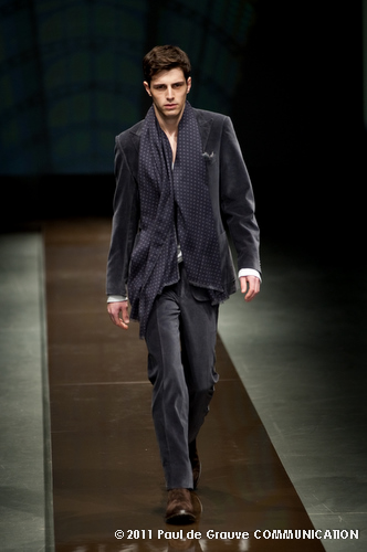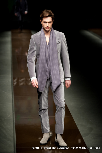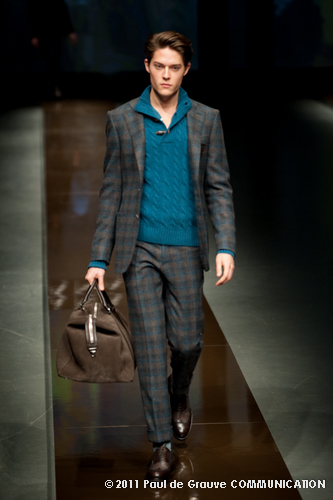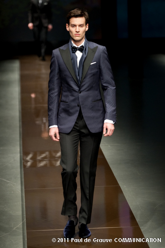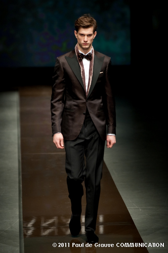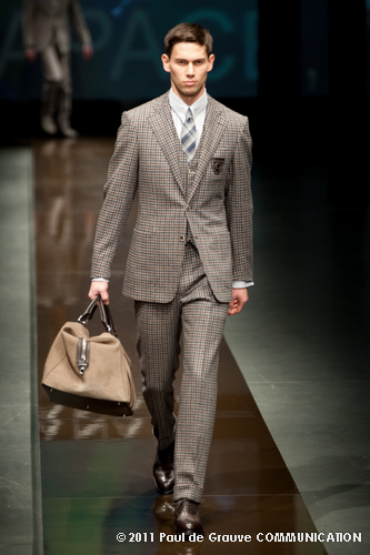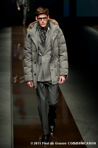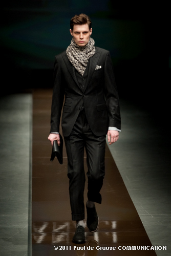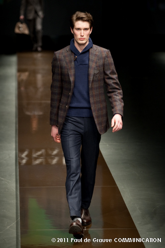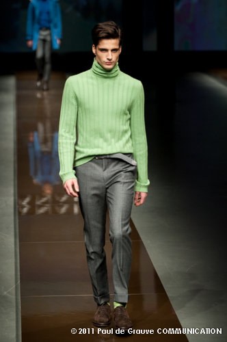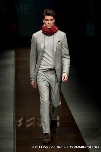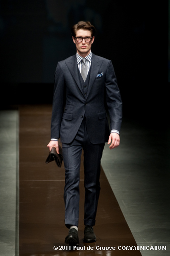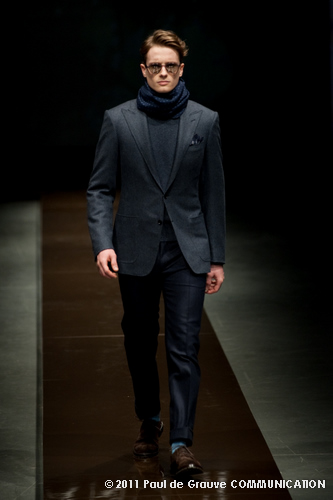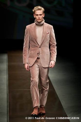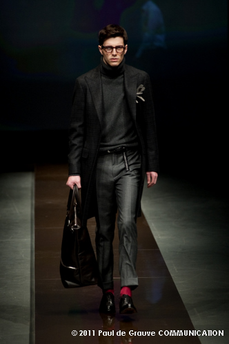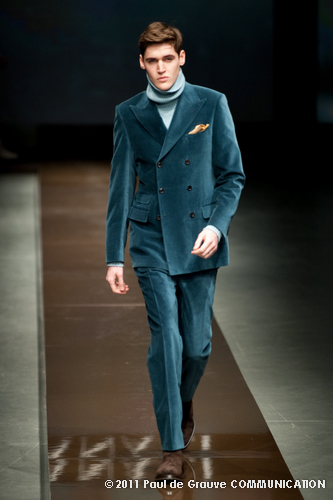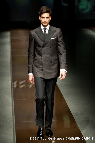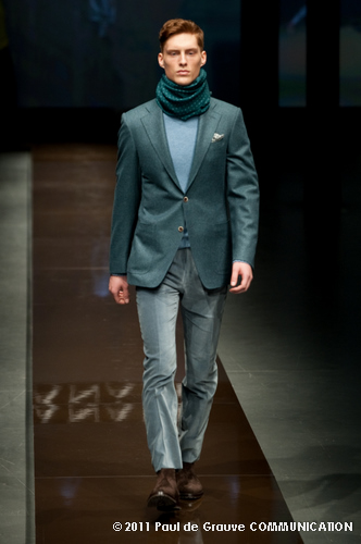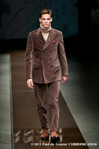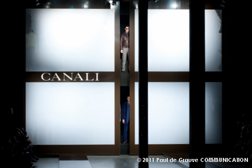 Canali asseconda tutto ciò. La Collezione Autunno Inverno 2011, anche se ruba qualche elemento all’eleganza inglese, è un tributo all’eleganza tipicamente italiana. La tradizione però è rivisitata in chiave moderna, adatta all’uomo contemporaneo: nuova vestibilità, nuove proporzioni, anche nei dettagli come per il risvolto del pantalone importante o nei revers alti a lancia, grandi specialmente nelle giacche doppio petto.