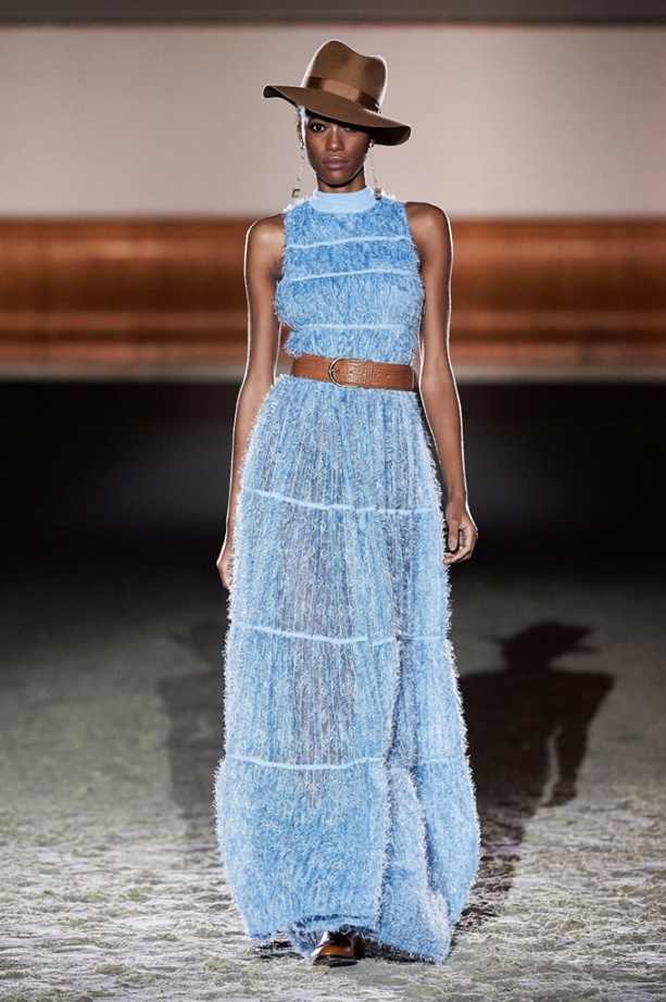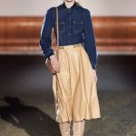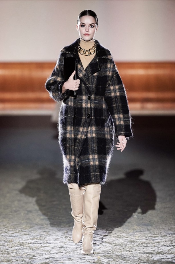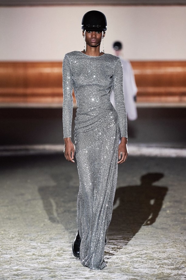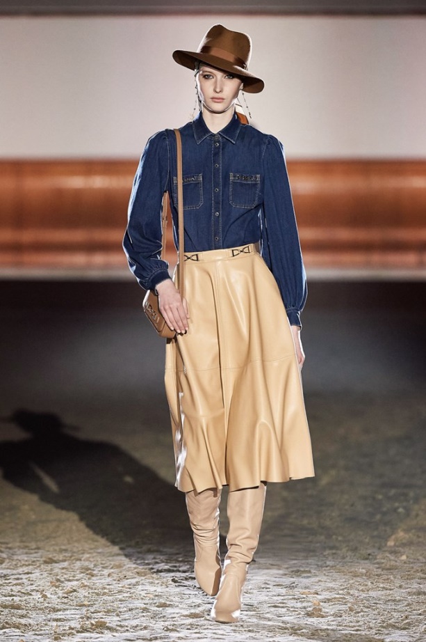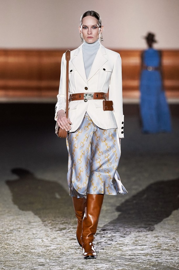 Per la presentazione della collezione A/I 2021-22 non si lascia sedurre da particolari suggestioni mediatiche, rappresentazioni sceniche folgoranti e sfolgoranti. Punta a far vedere la collezioni, capo per capo, accessorio per accessorio; cerca una ambientazione coerente alle sue creazioni e fa sfilare le sue modelle dal vivo in una scuderia dopo un brevissimo show –due amazzoni con passo deciso raggiungono 2 cavalli per cavalcarli-, che introduce il tema della collezione, interamente suggerita dallo stile cavallerizzo.