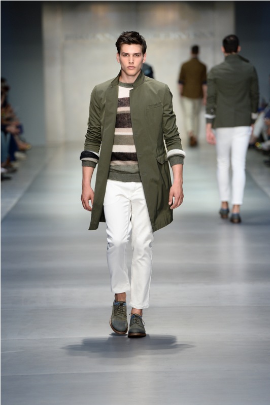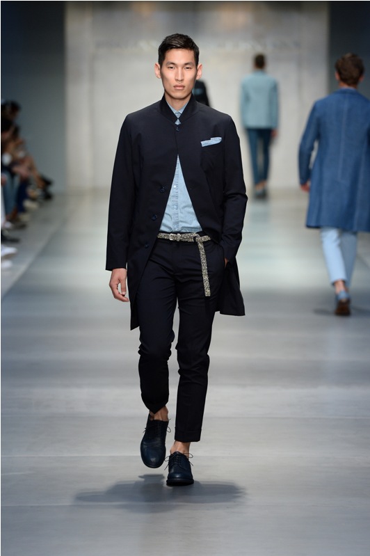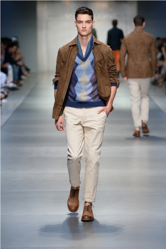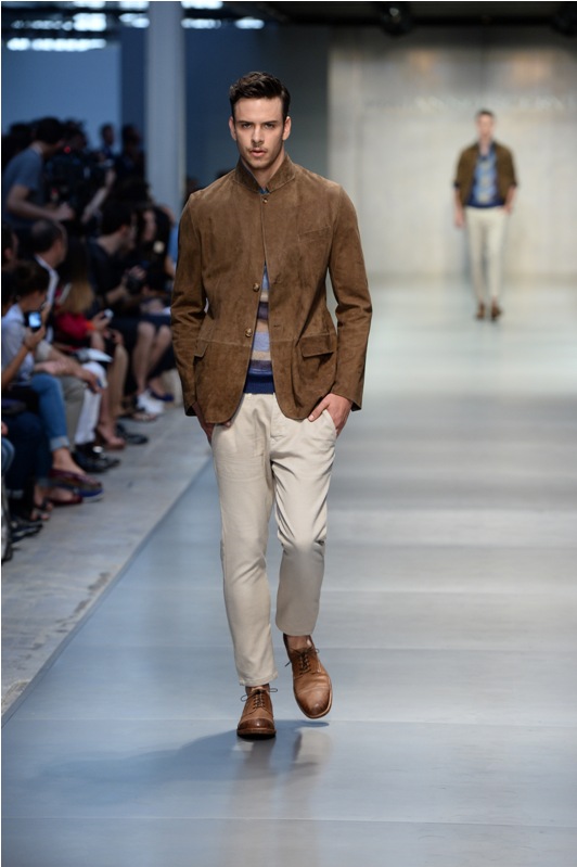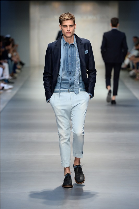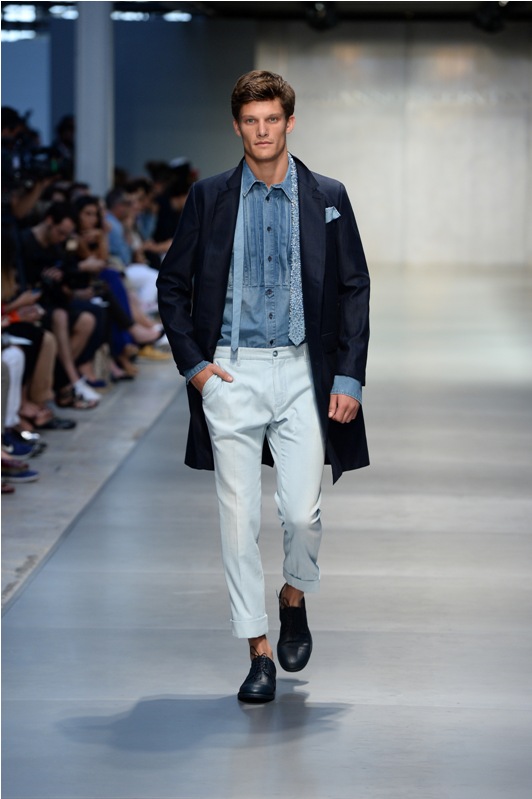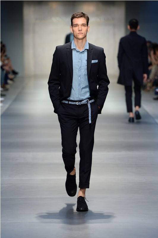 Ho cercato di immaginare la collezione di Ermanno Scervino primavera/estate 2014, presentata a Milano Moda Uomo, indossata da un personaggio di successo di oggi. Una persona giovane, dinamica, che viva però con compostezza la sua modernità: qualcuno che possa rappresentare un’icona per i giovani d’oggi, essere un esempio di eleganza alla moda anche con capi fuori dai canoni, dove però non c’è neppure un elemento disarmonico.